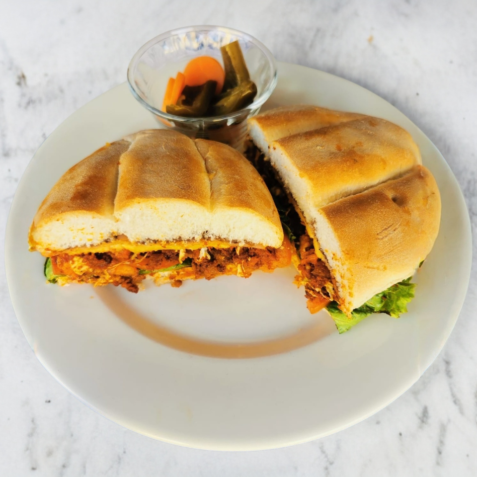 Con queso, crema y cebolla, incluye telera y salsa picante.