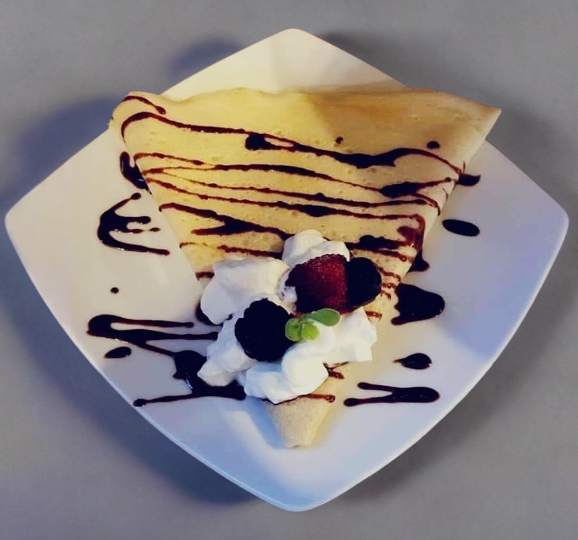 Deliciosa crepa elaborada a base de harina integral, rellena de mermelada de zarzamora.