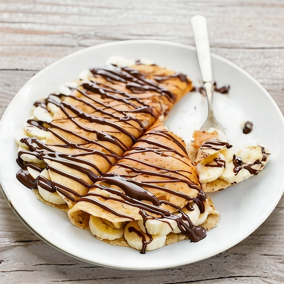 Deliciosa crepa elaborada a base de harina integral, rellena de Nutella.