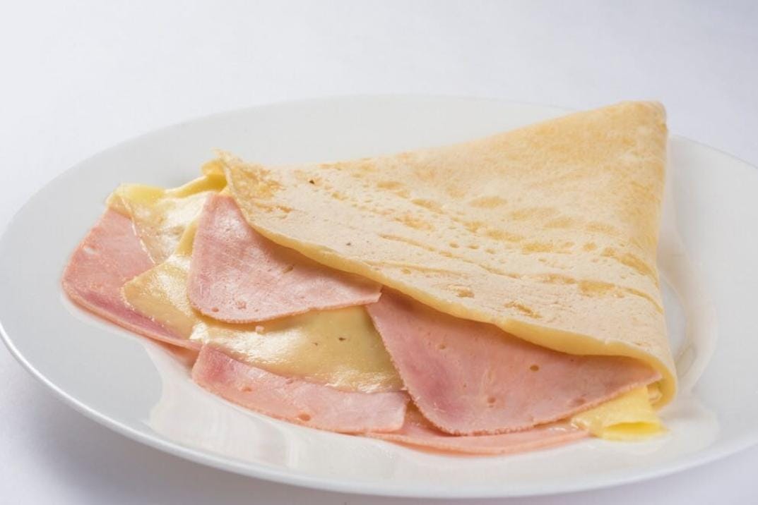 Crepa elaborada de harina integral con queso manchego y jamón.