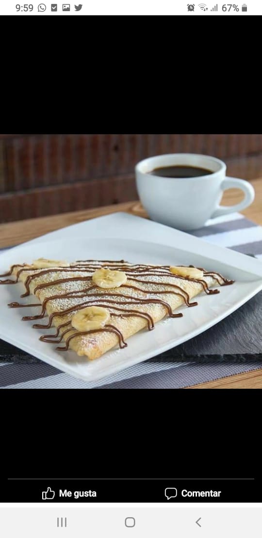 Deliciosa crepa elaborada a base de harina integral, rellena de lechera con plátano.