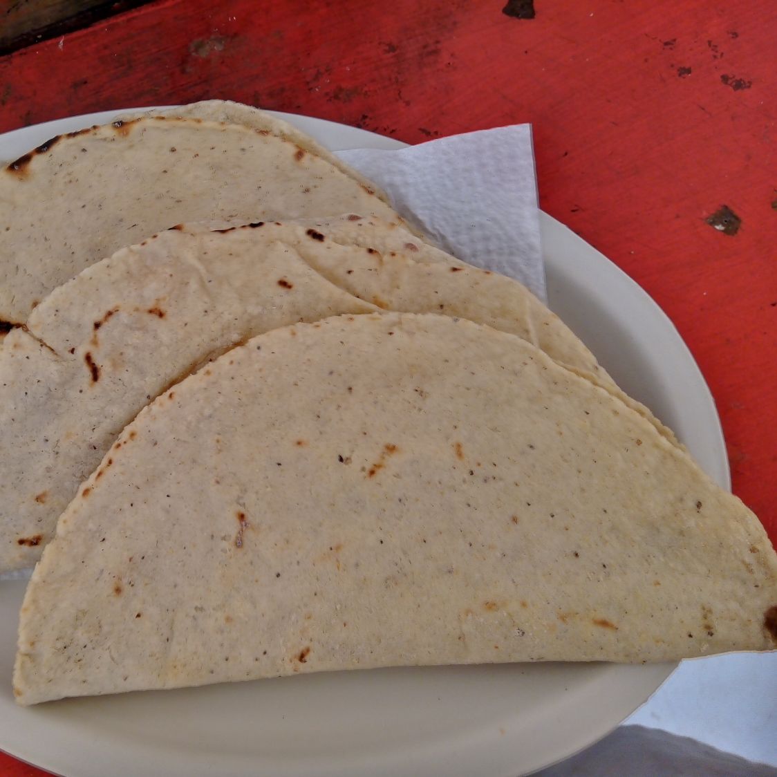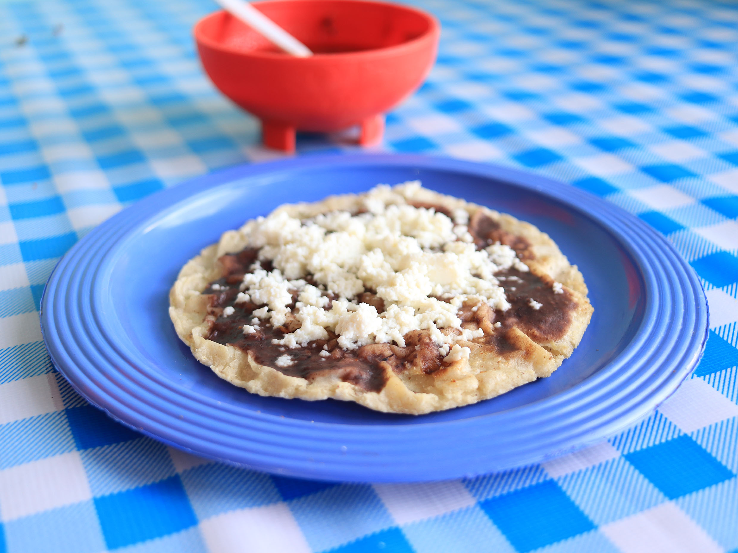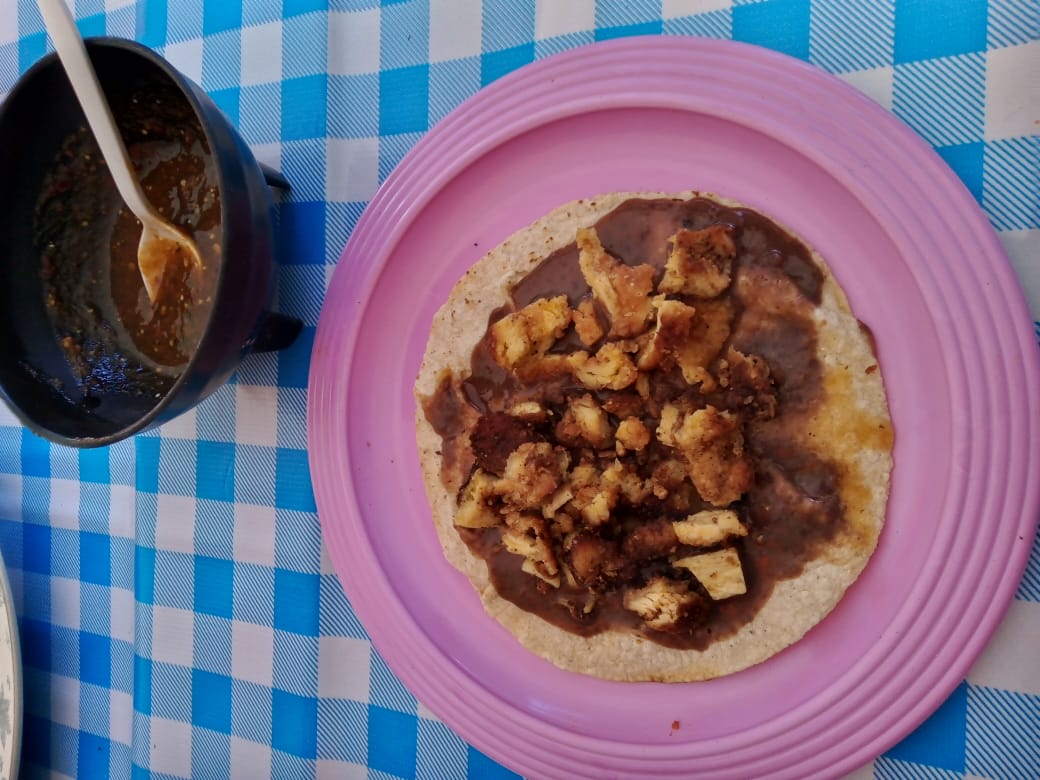 Tortilla de maíz, asiento, quesillo acompañados con salsa de morita y habanero.