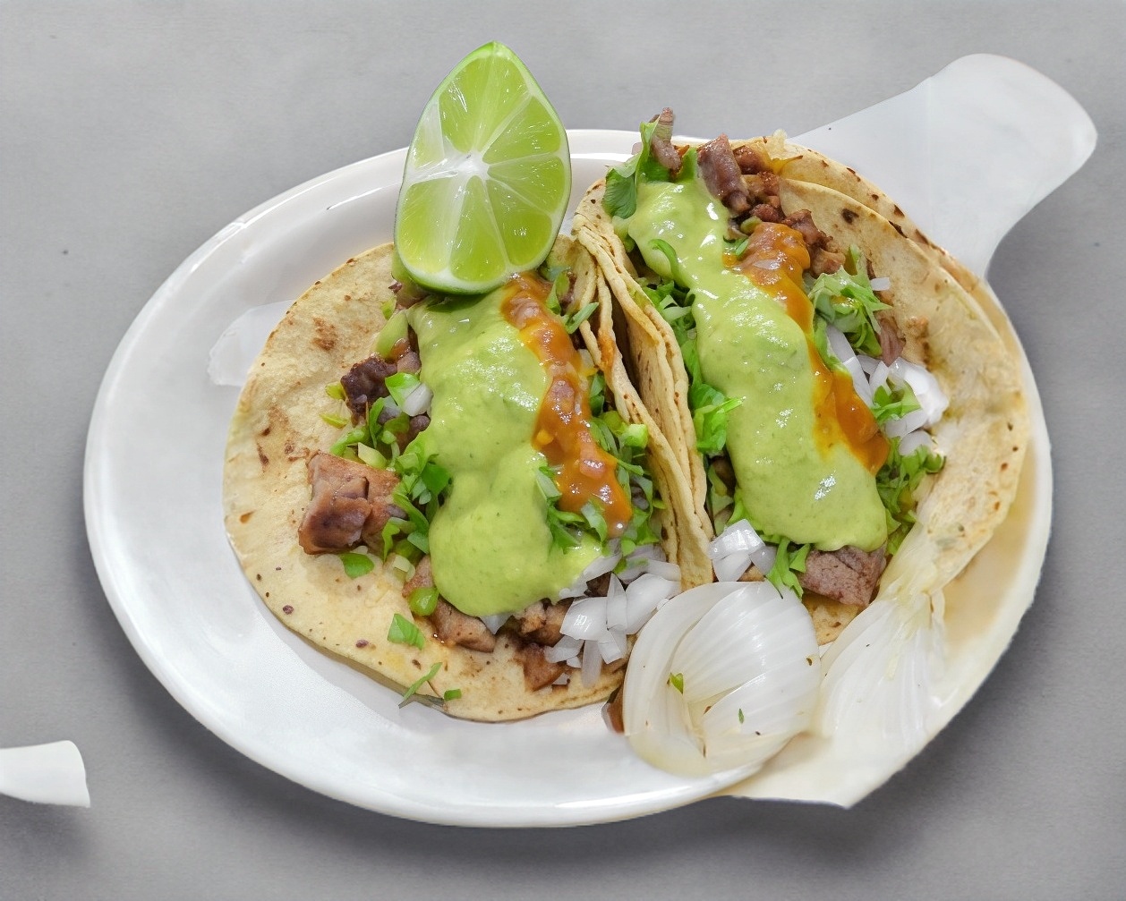 Los emblemáticos de lencho a elegir: tortillas de maíz taquera, carne a elegir puedes elegir la variedad de carnes que aparecen, salsa guacamote, salsa mexicana y limones.