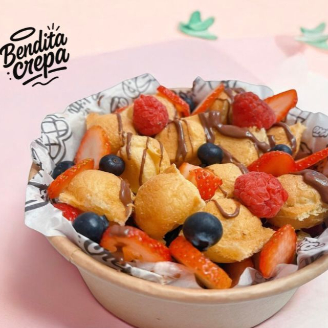 Bowl de bites de waffles con nutella y mix de frutos rojos frescos
