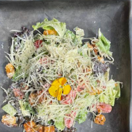 Lechuga, crotones, queso parmesano, aderezo cesar y tomate cherry.