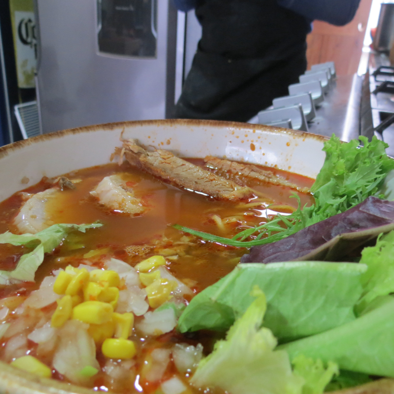 Tradicional pozole de birria, con suculento caldo lleno de sabor, carne jugosa y granos de maíz nixtamalizado. Acompañado de cebolla, limón y orégano para disfrutar como nunca