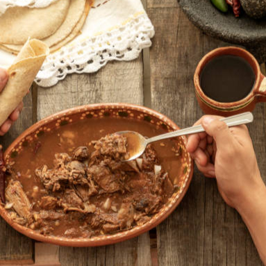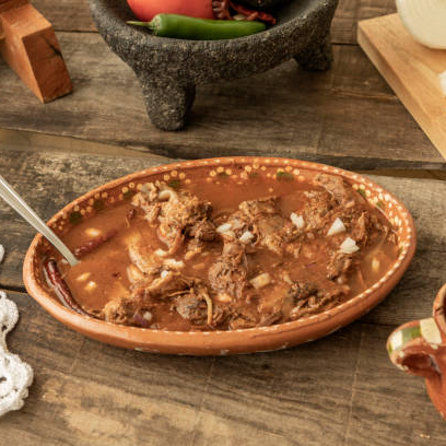 Delisioso caldo de la cocción lenta de la carne, combinado con una deliciosa mezcla de especias y chiles que le proporcionan un sabor inconfundible.