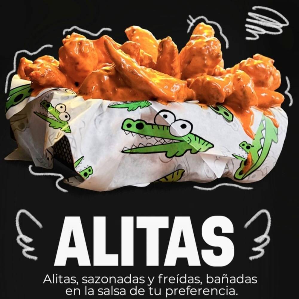 350 gr de alitas (pesadas en crudo) + Papas + Bebida (Todos nuestros pesajes son aproximados en crudo).