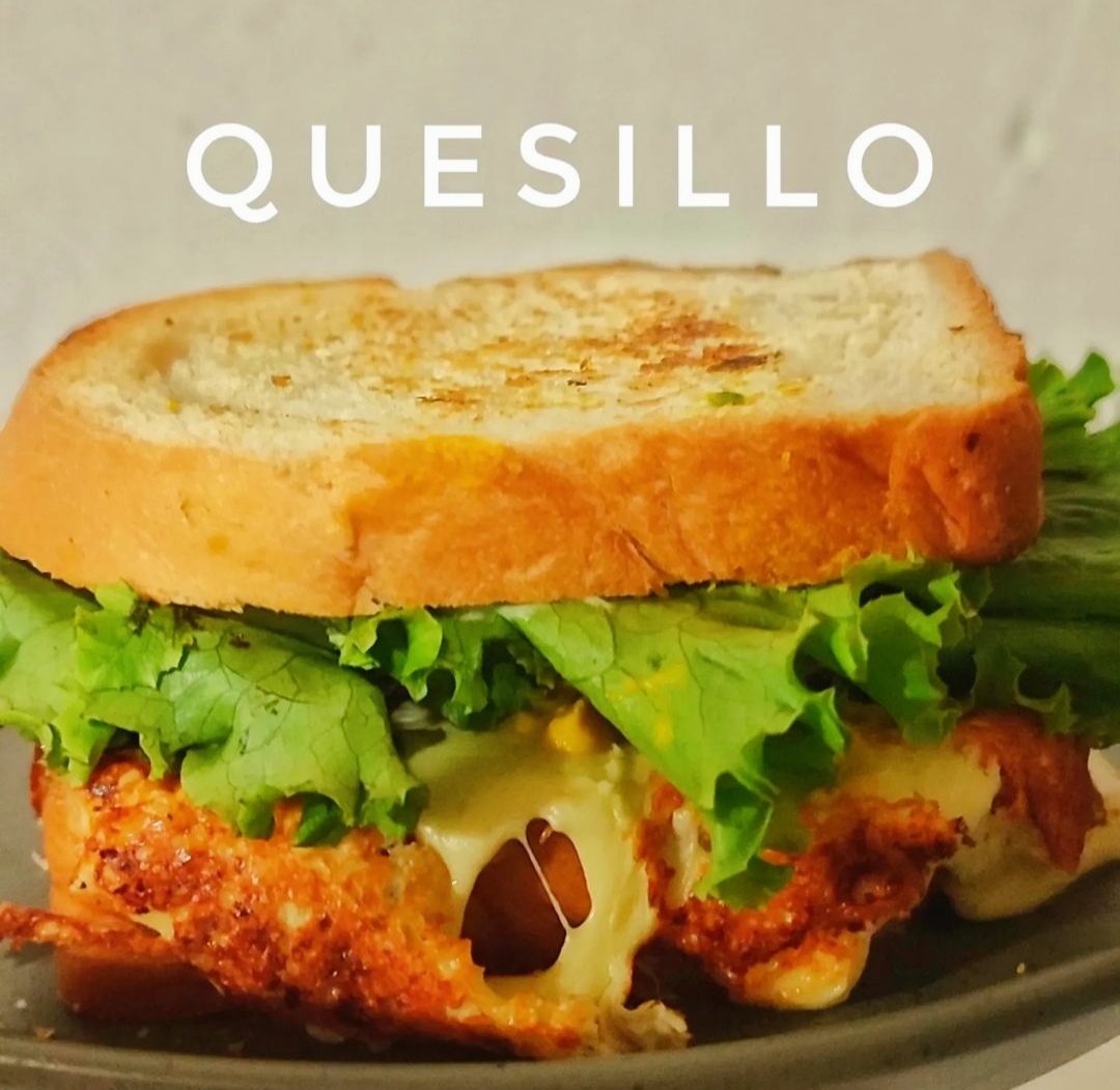 Pan de caja, mayonesa, mostaza, aguacate, tomate, lechuga y quesillo.