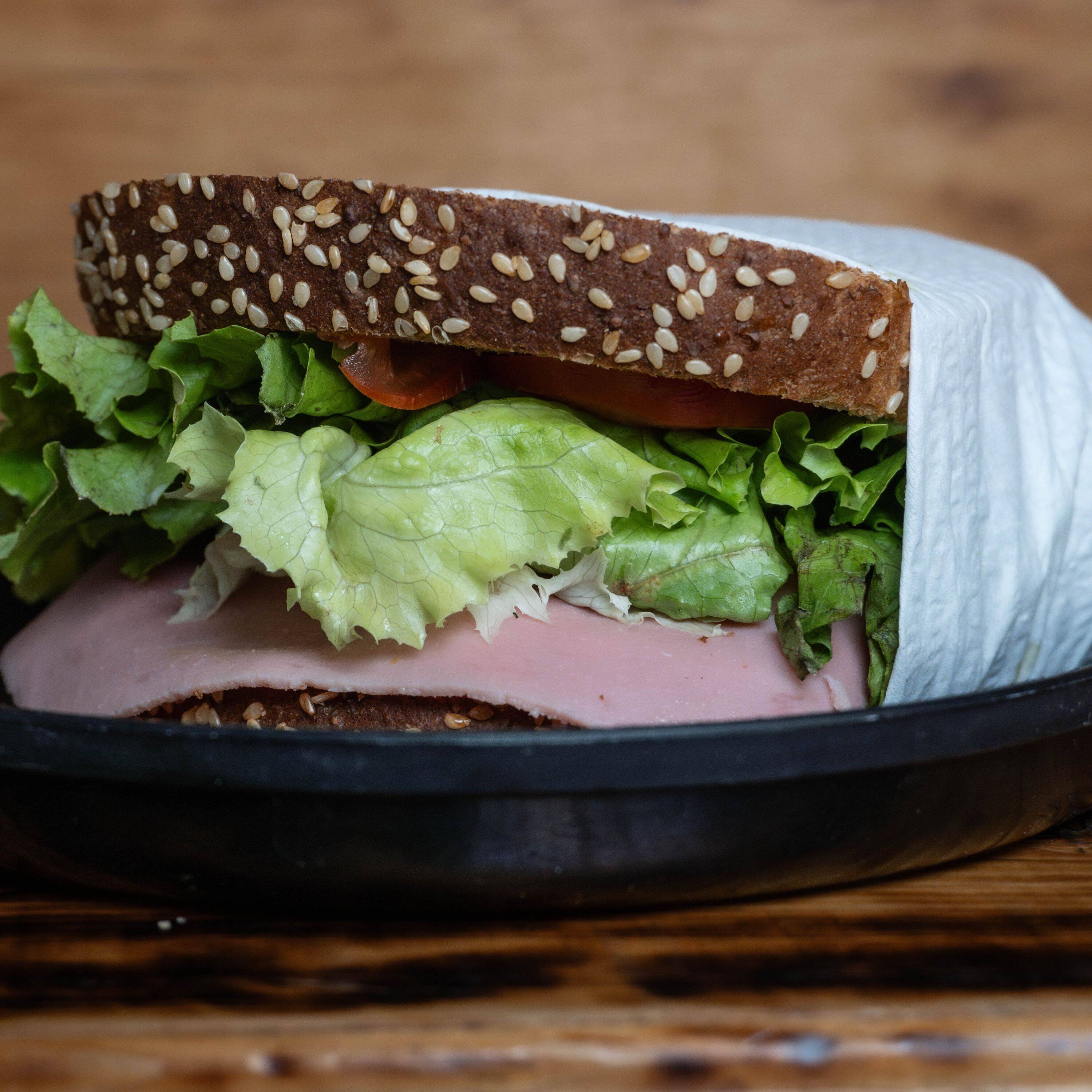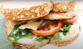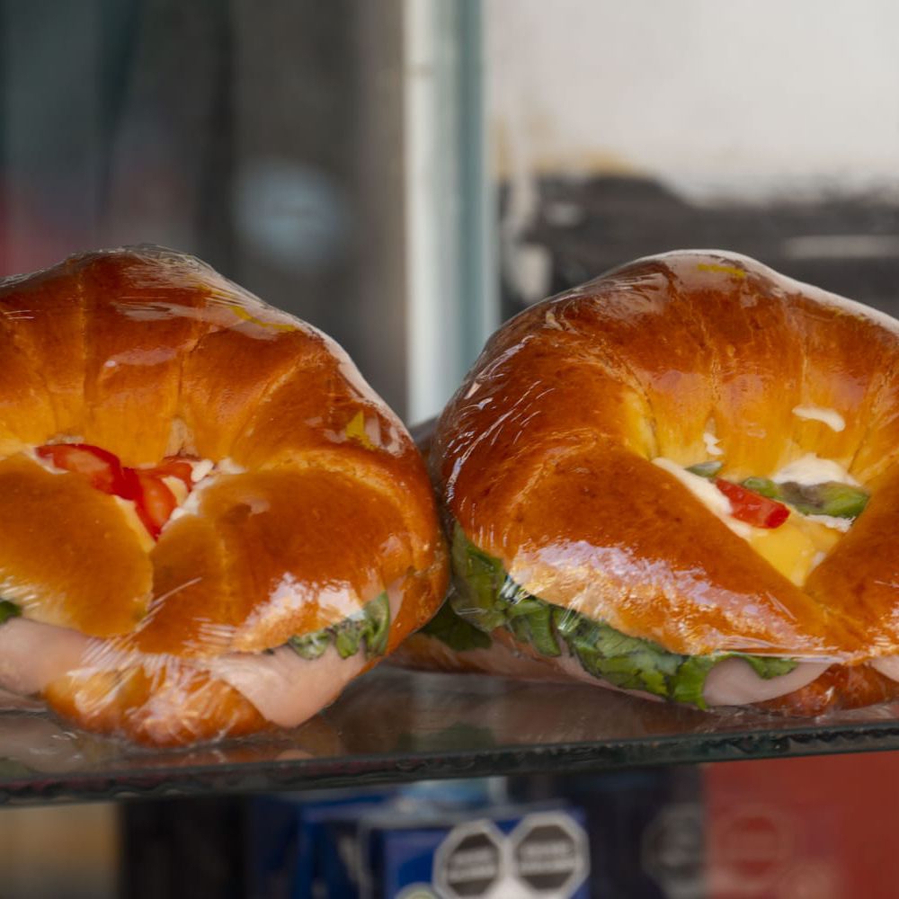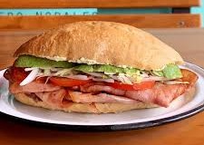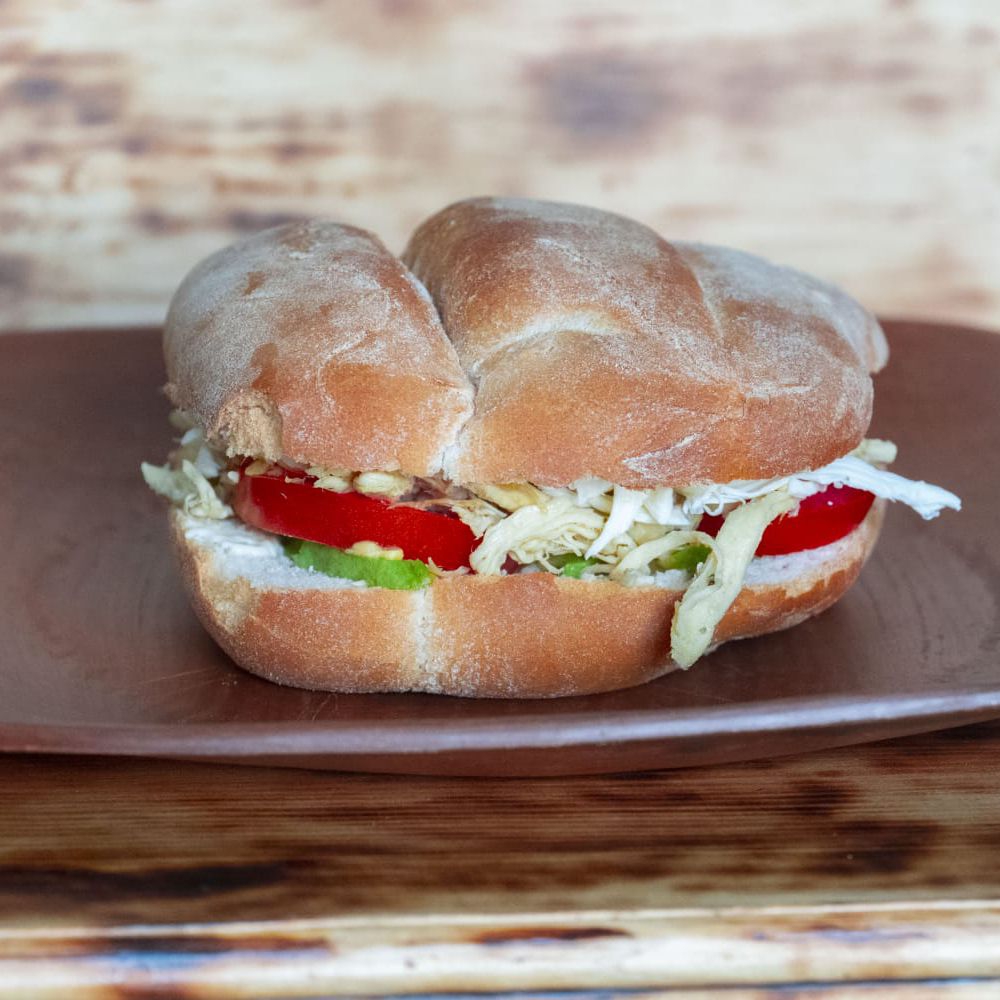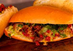 Pan de cuernito relleno de quesillo y jamón,lechuga tomate,mayonesa,picante