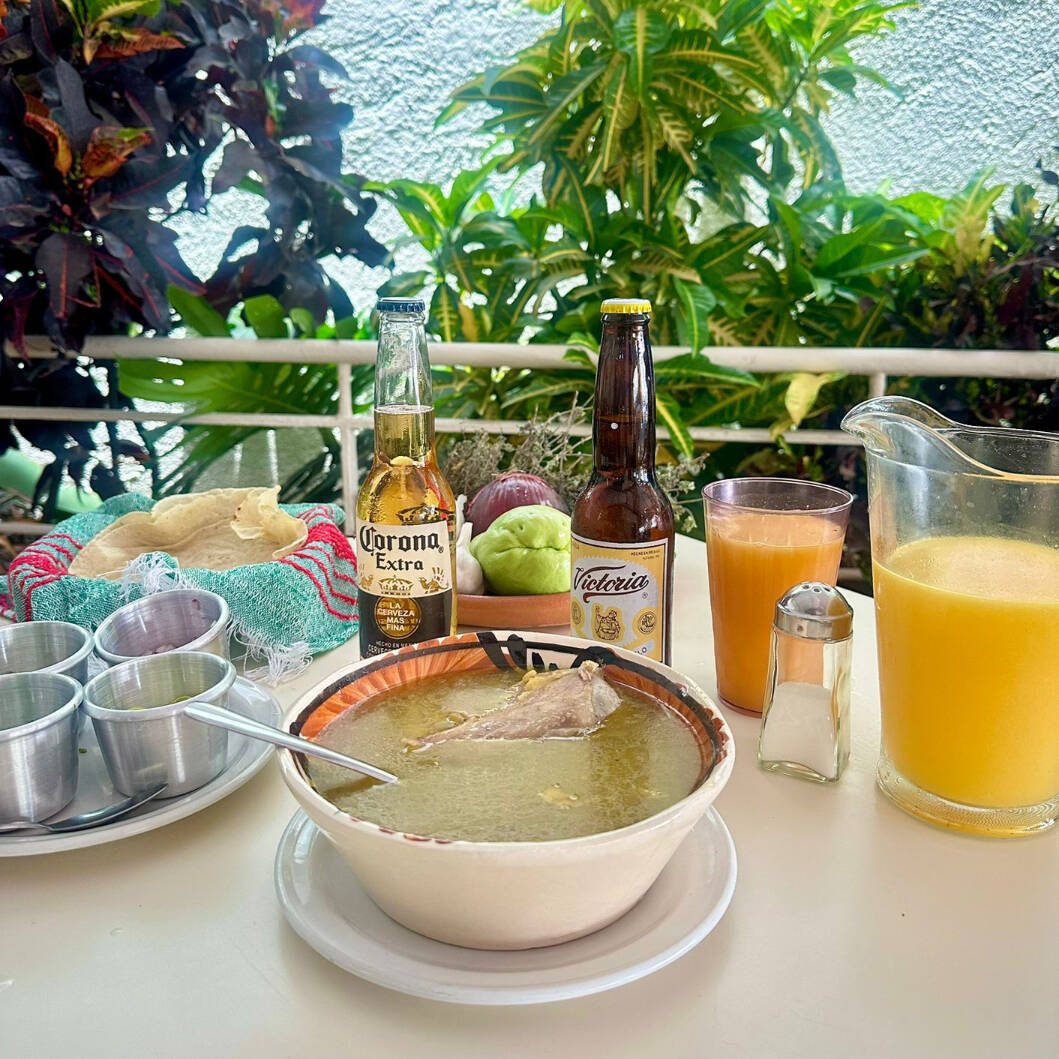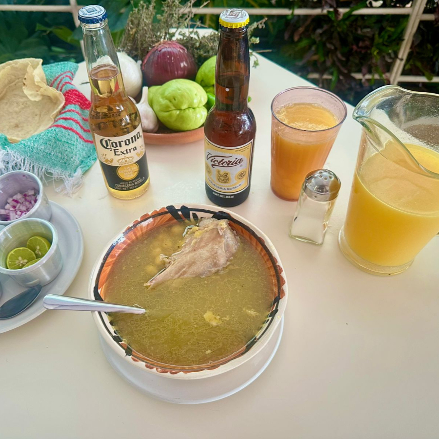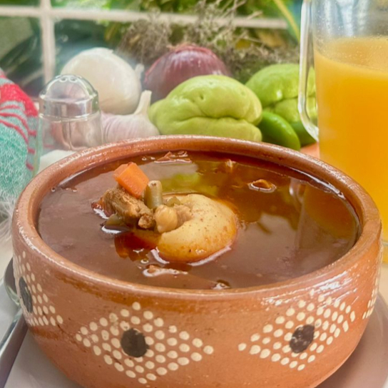PANCITA, PATA, GARBANSO, ZANAHORIA, EJOTE A COMPALLADO CON TORTILLAS A MANO