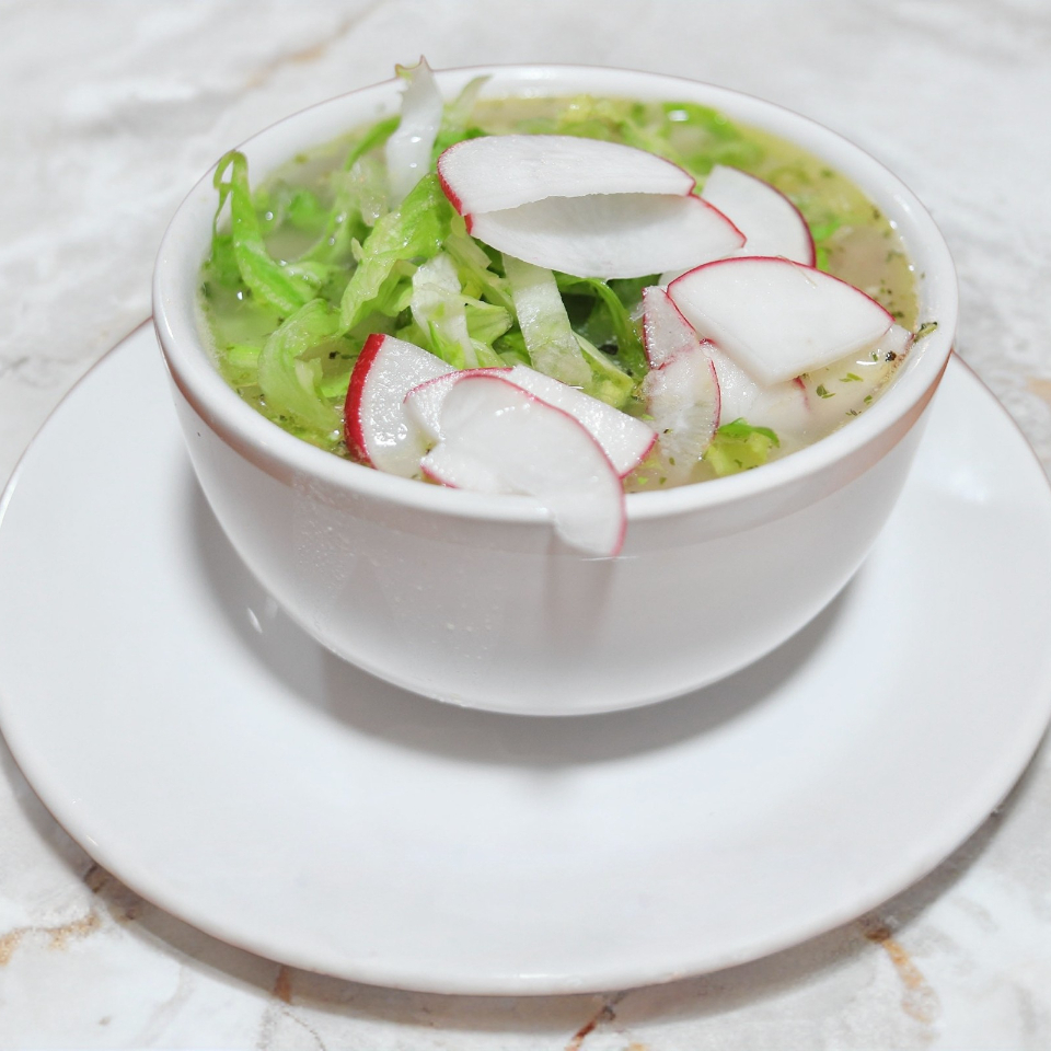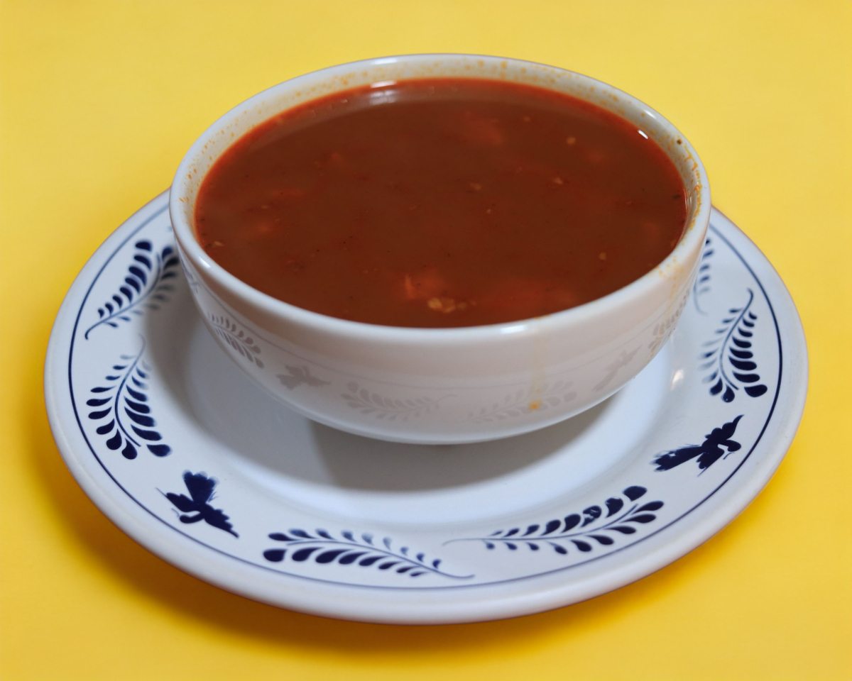 Delicioso caldito de camarón, sin camarones, mezclado con cilantro y cebolla, y especiado con chilitos mas picosos, digno de levantar a cualquier muertito.