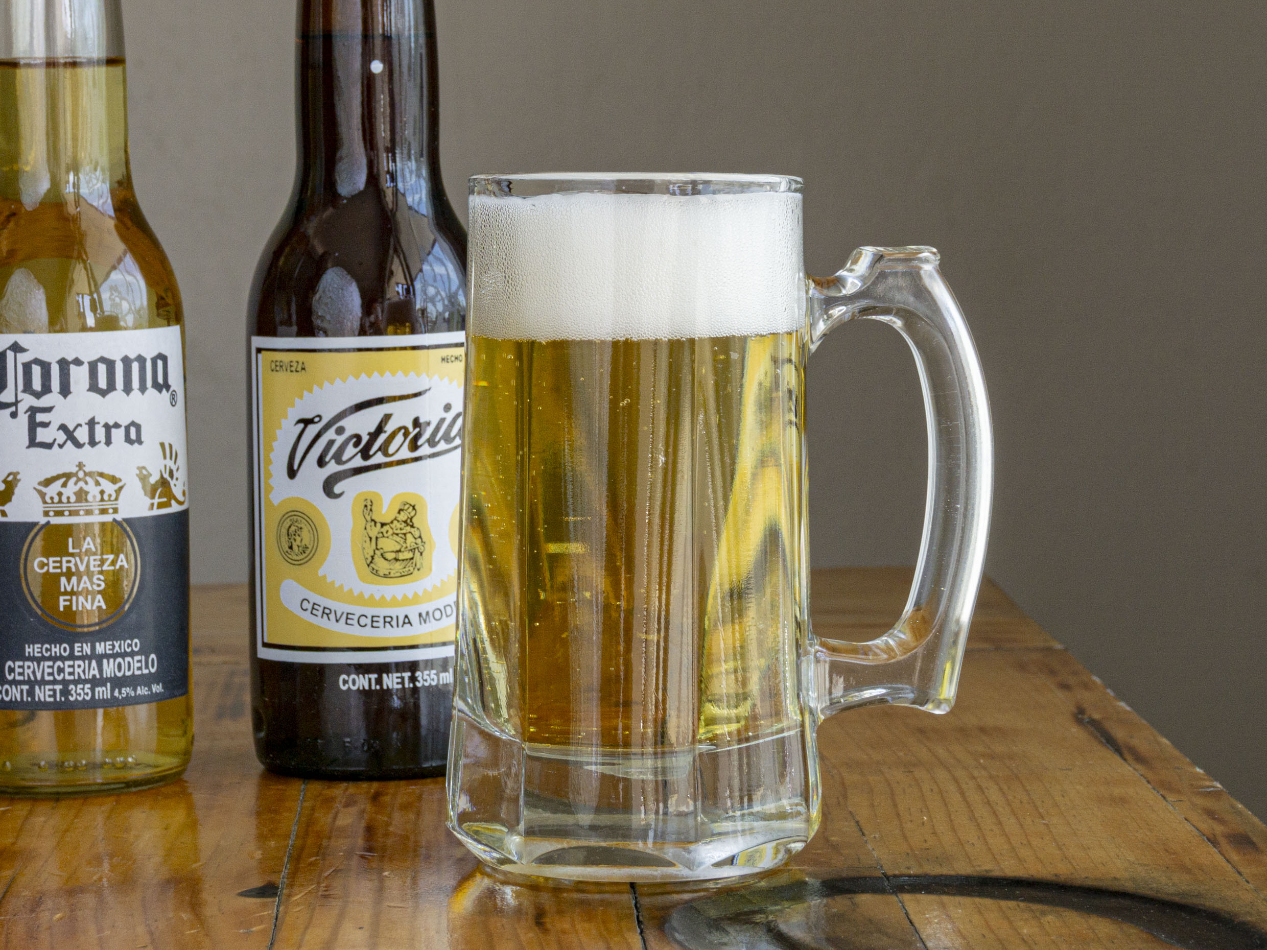 Corona, Victoria, Tecate Light. Se envía en vaso desechable con tapa.
