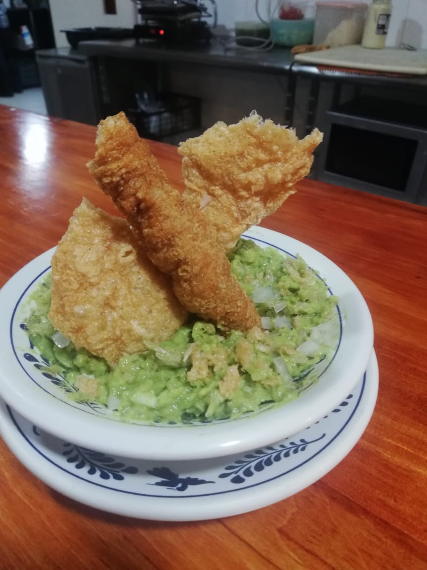 3 Quesadillas hechas con queso fresco, chicharrón picado y aguacate, hechas al comal, deliciosas.