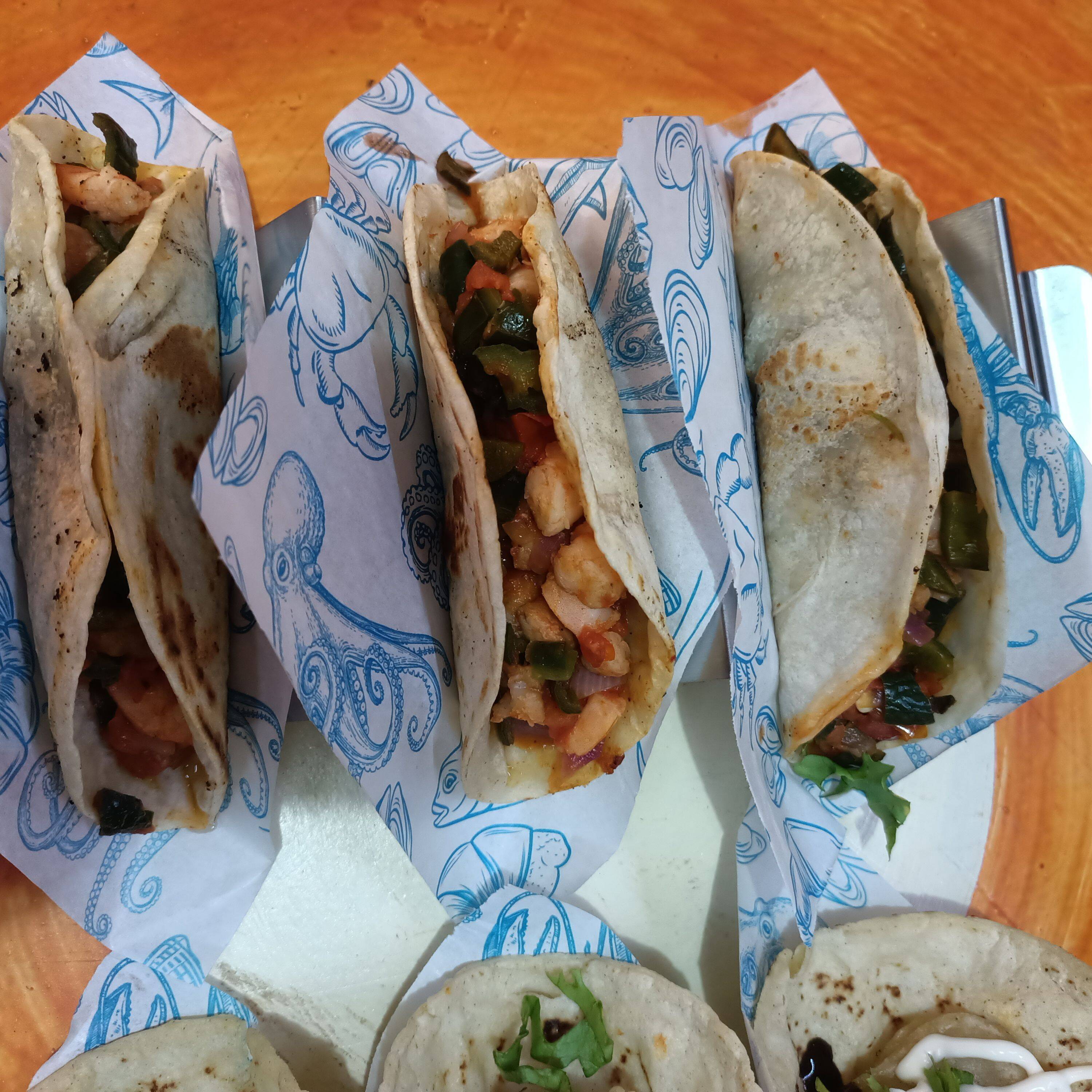 TACOS DE CAMARON TIPO BAJA