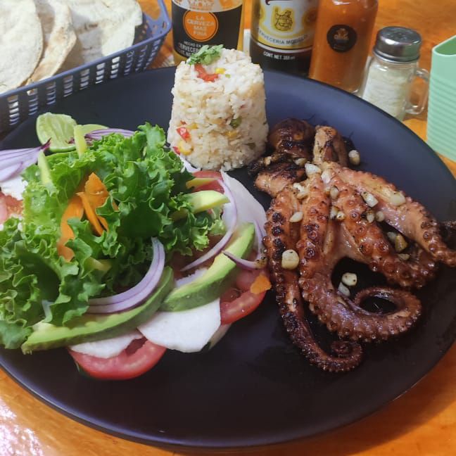 Camarón, pulpo y ostión frescos, bañados de una rica salsa de capsu preparada con especias de la casa, cilantro, cebolla, aguacate con un toque de aceite de oliva y salsa negra.y