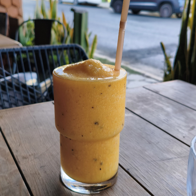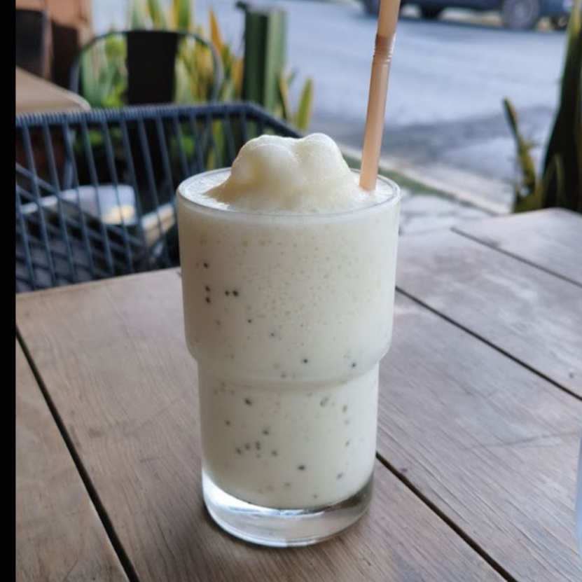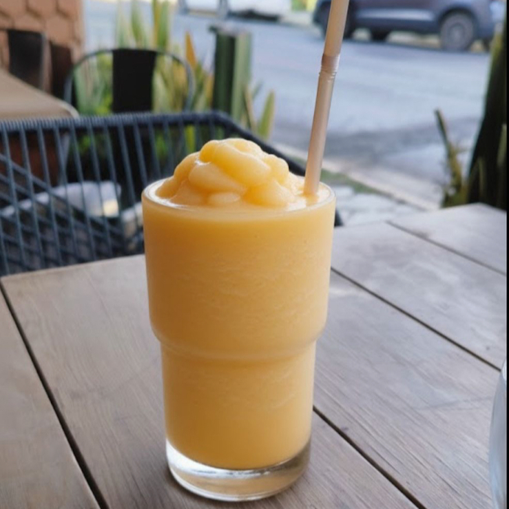 Durazno en almíbar, menta fresca y betún de queso crema.