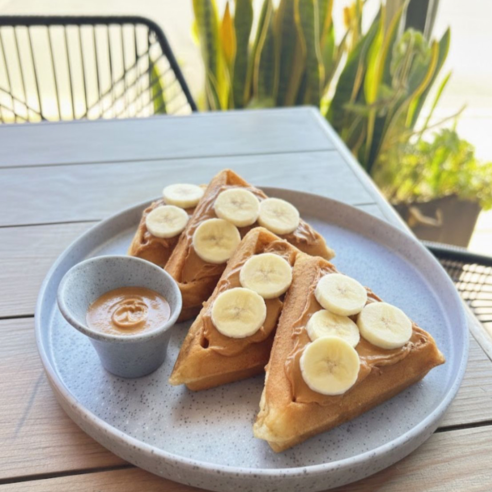 Jamón fresco, con queso manchego gratinado, maple o salsa de tomate.