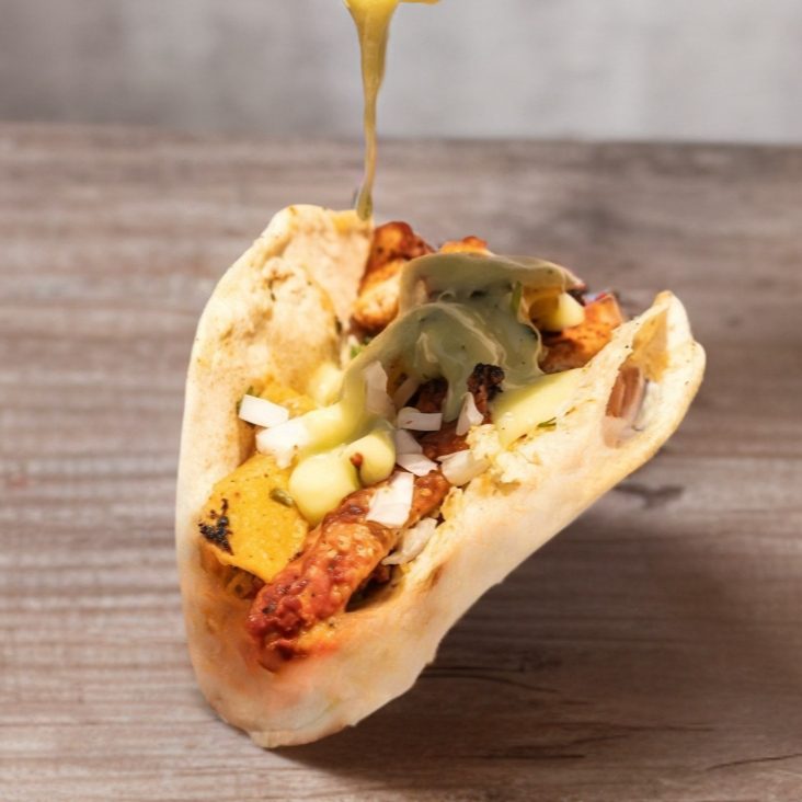 4 Tacos de Chorizo con Queso acompañado con salsa y guacamole