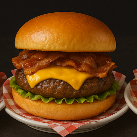 Nuestra hamburguesa clasica con tocino fresco