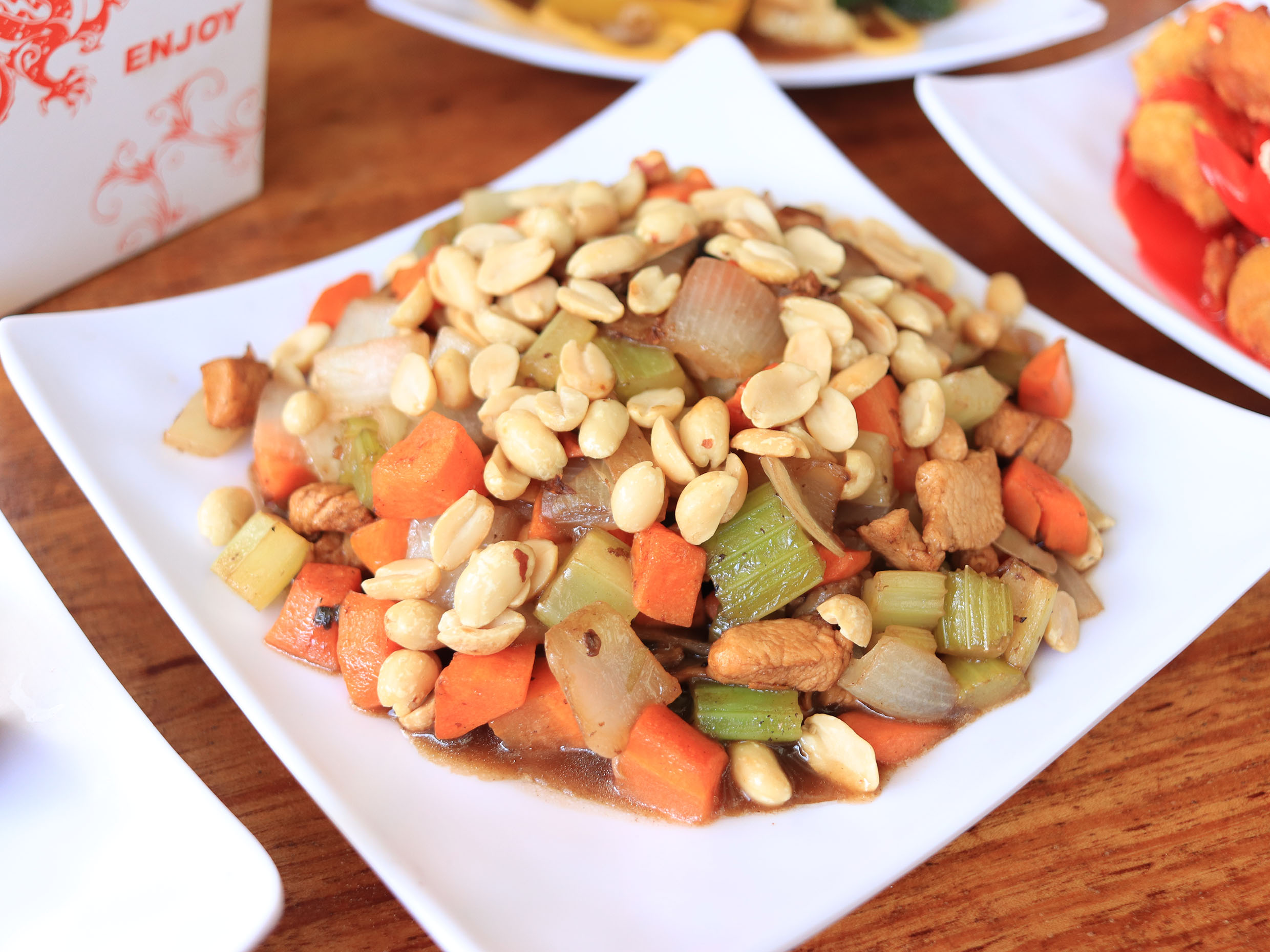 Zanahoria,apio,champiñon, aderezo en salsa de soya;cacahuate frito al momento