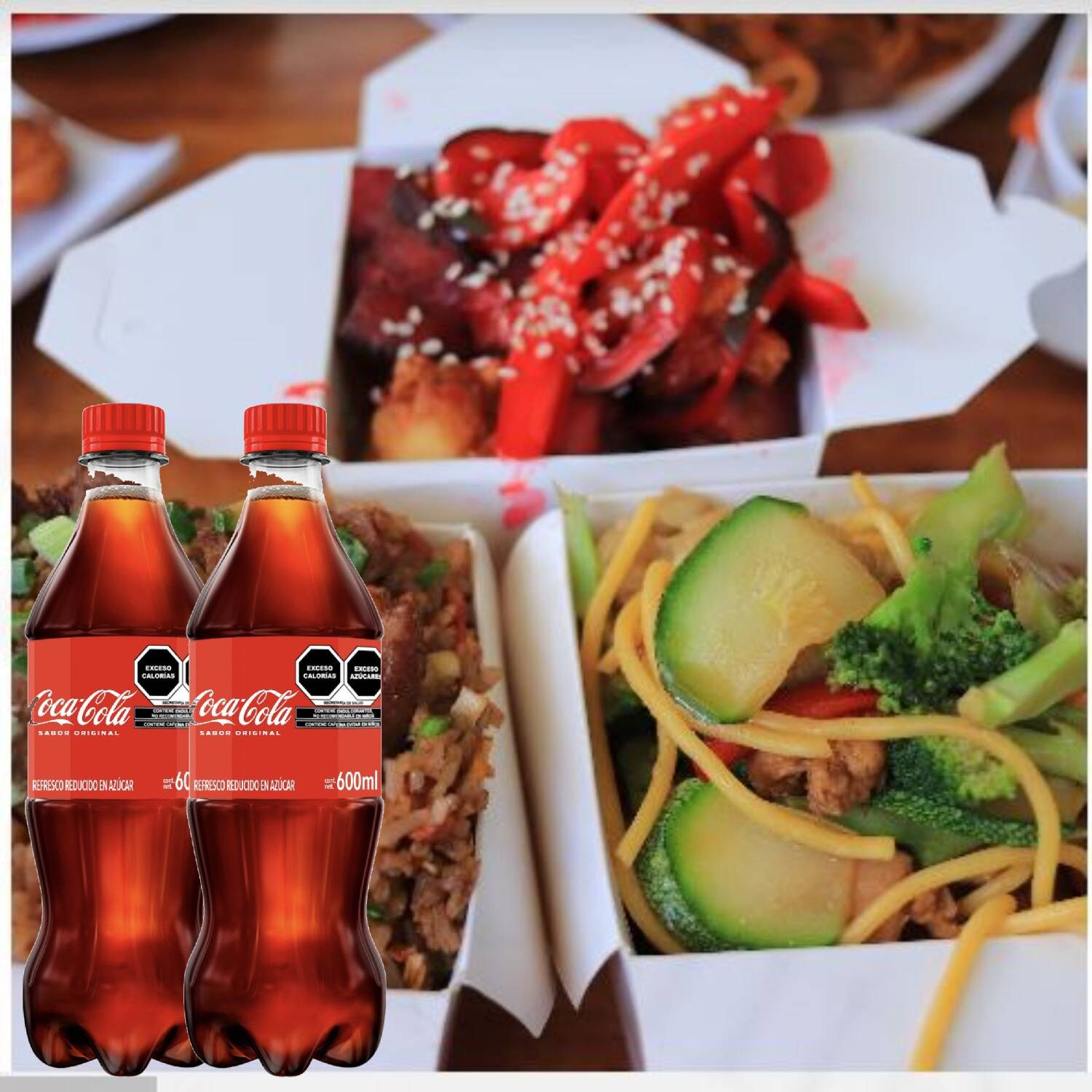 Chao fan(arroz frito) Agridulce (pollo y costilla) Chao Mein (Noodles) 1/4 de lt de cada platillo 2 Rollos Primavera 2 Coca Cola de 600ml
