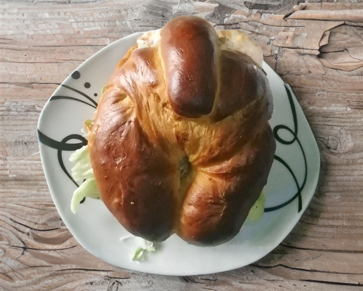 Pan danés con mayonesa, lechuga, jamón, quesillo, aguacate y queso amarillo.