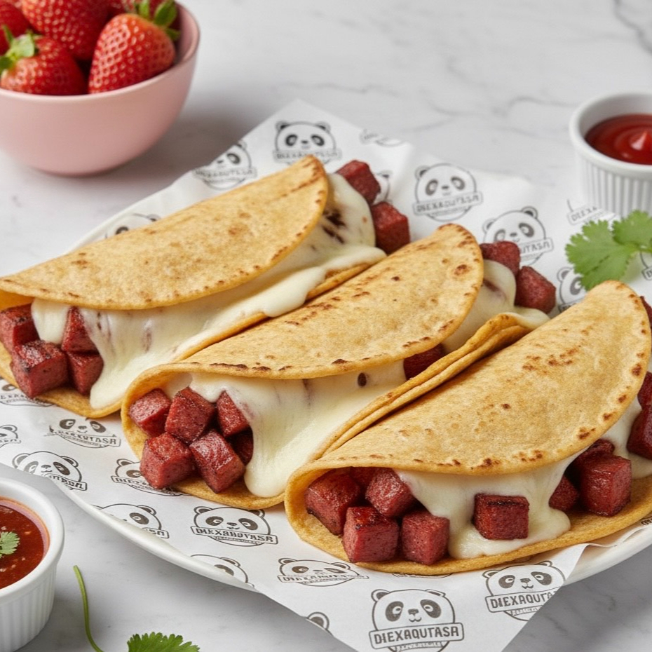 Tres gringas con el sabor ahumado único de la salchicha asadera con queso mozzarella