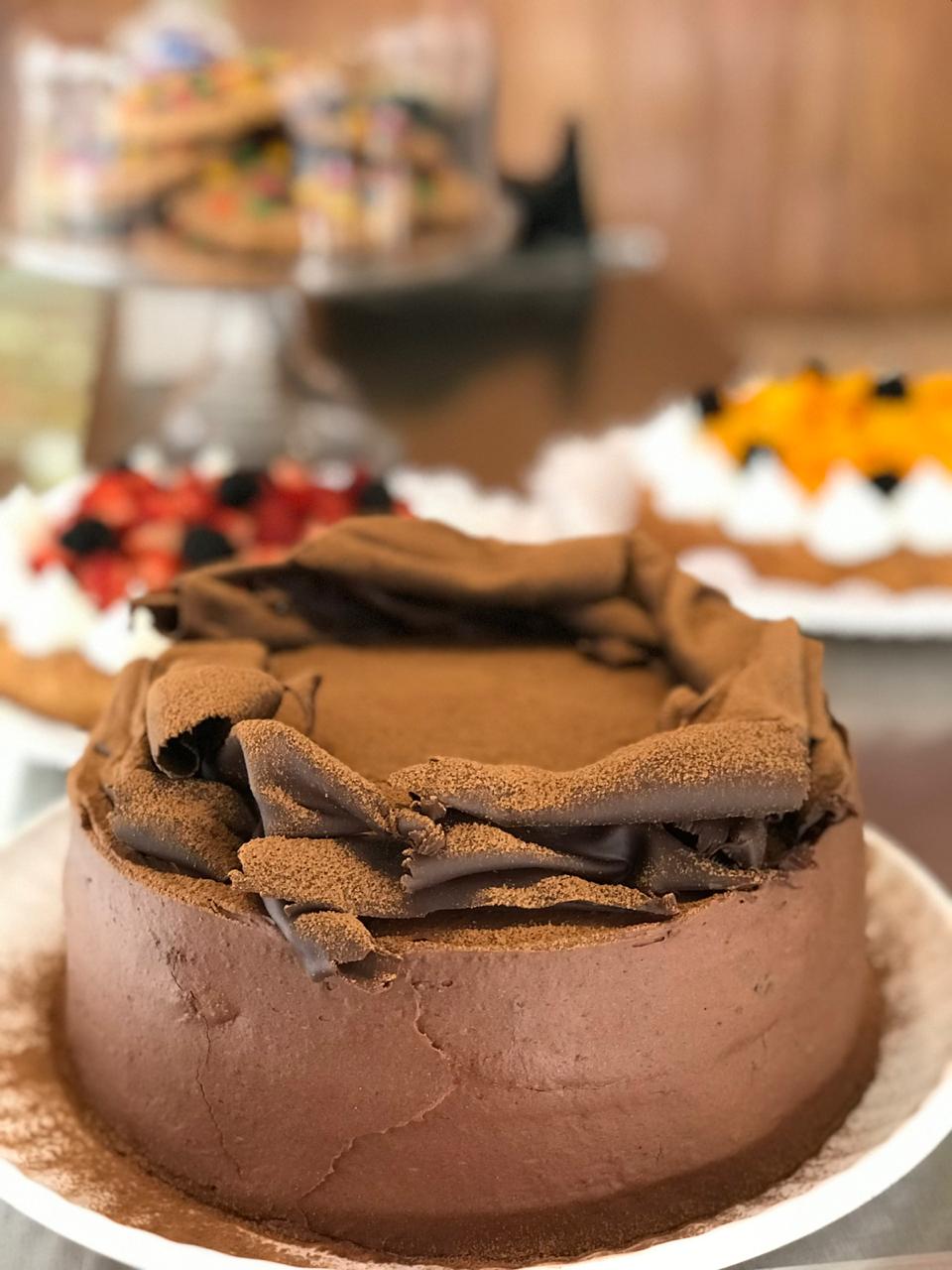 Base de masa quebrada,con chocolate semi amargo,crema babaría y crema batida