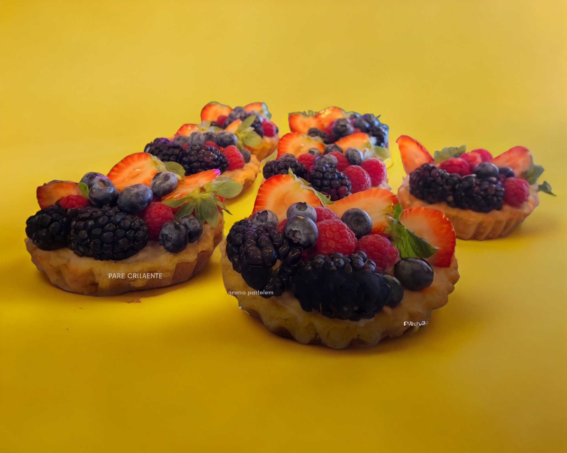 Deliciosa base de masa quebrada, rellena de crema pastelera y frutos rojos