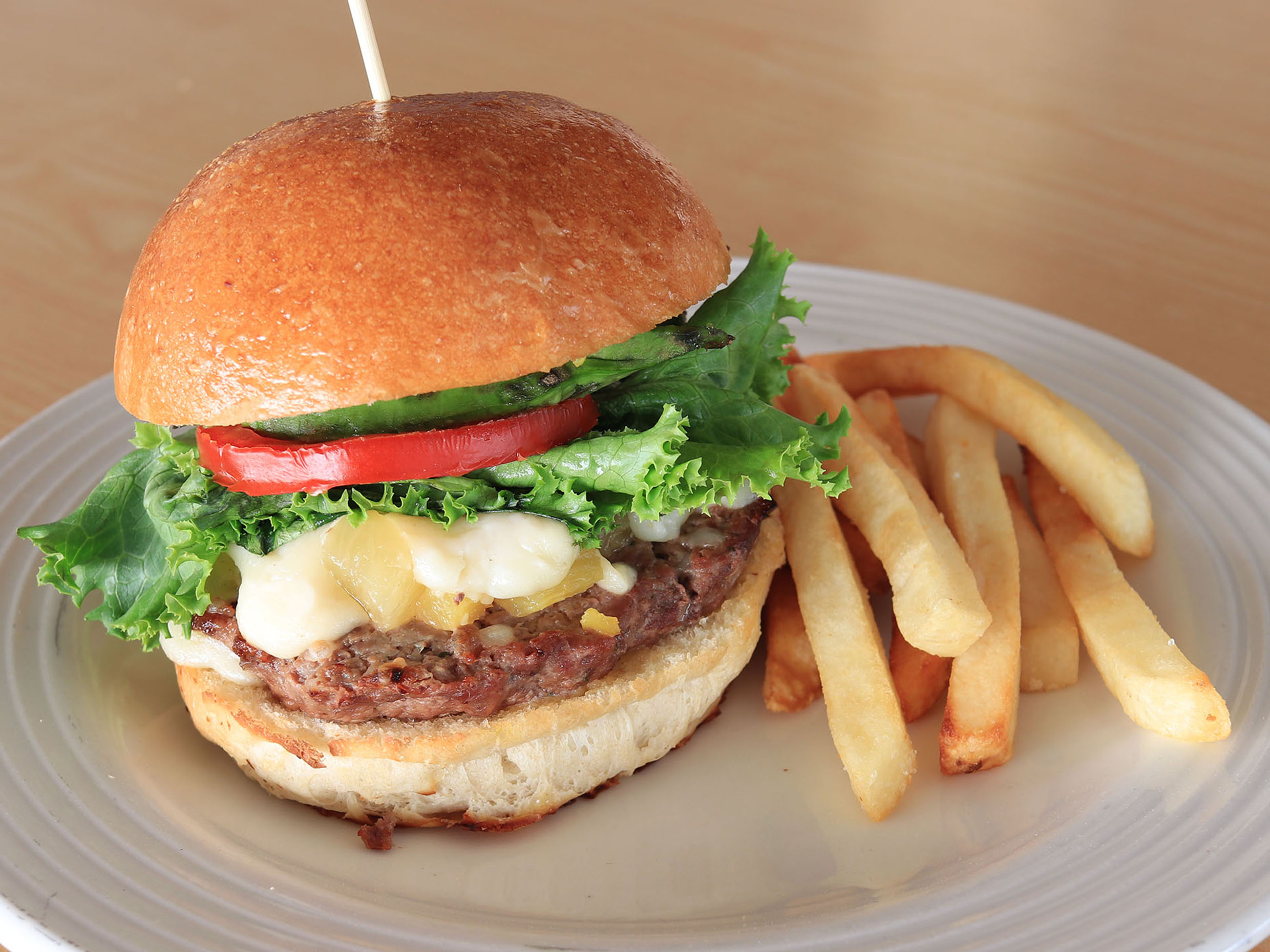 150 grs de carne, piña, queso mozzarella, acompañado de papas