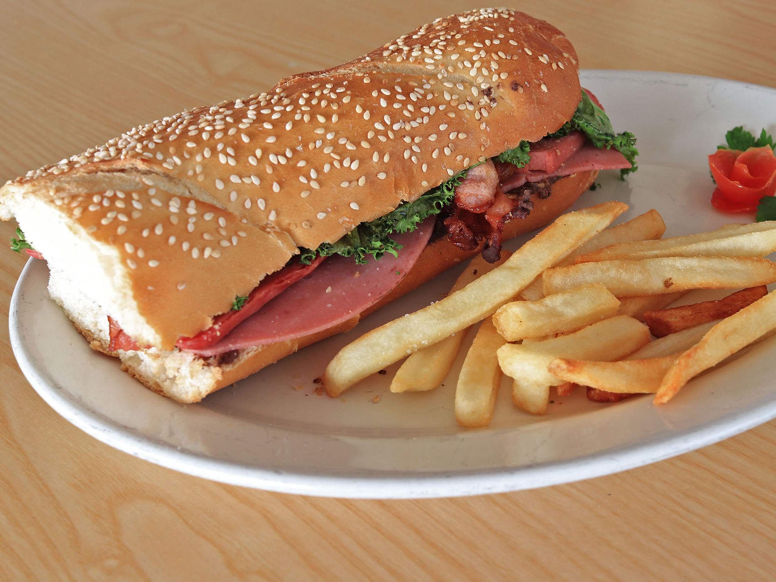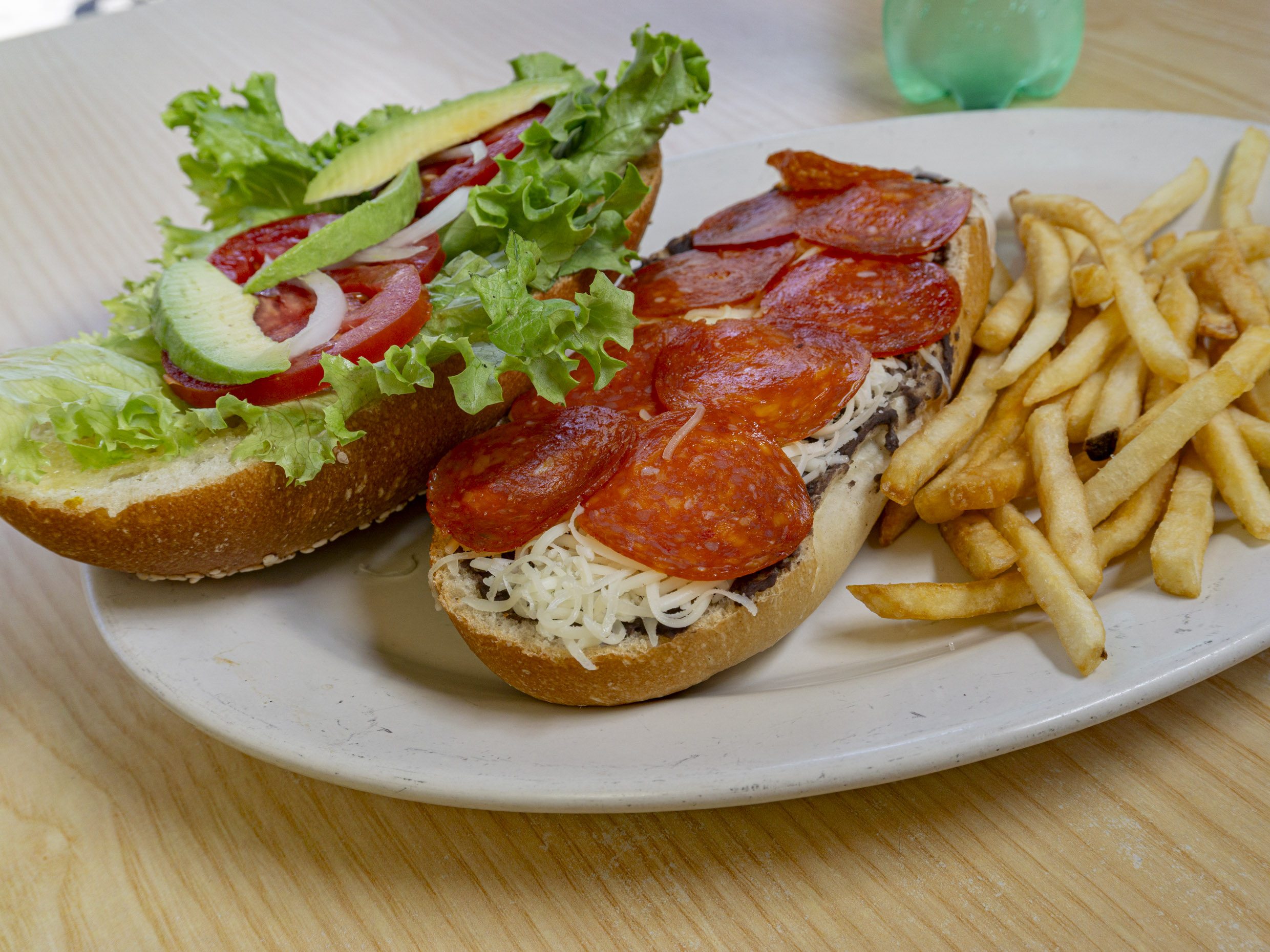 Mantequilla, cecina, queso gratinado, cama de lechuga, tomate y aguacate. Incluye papas.