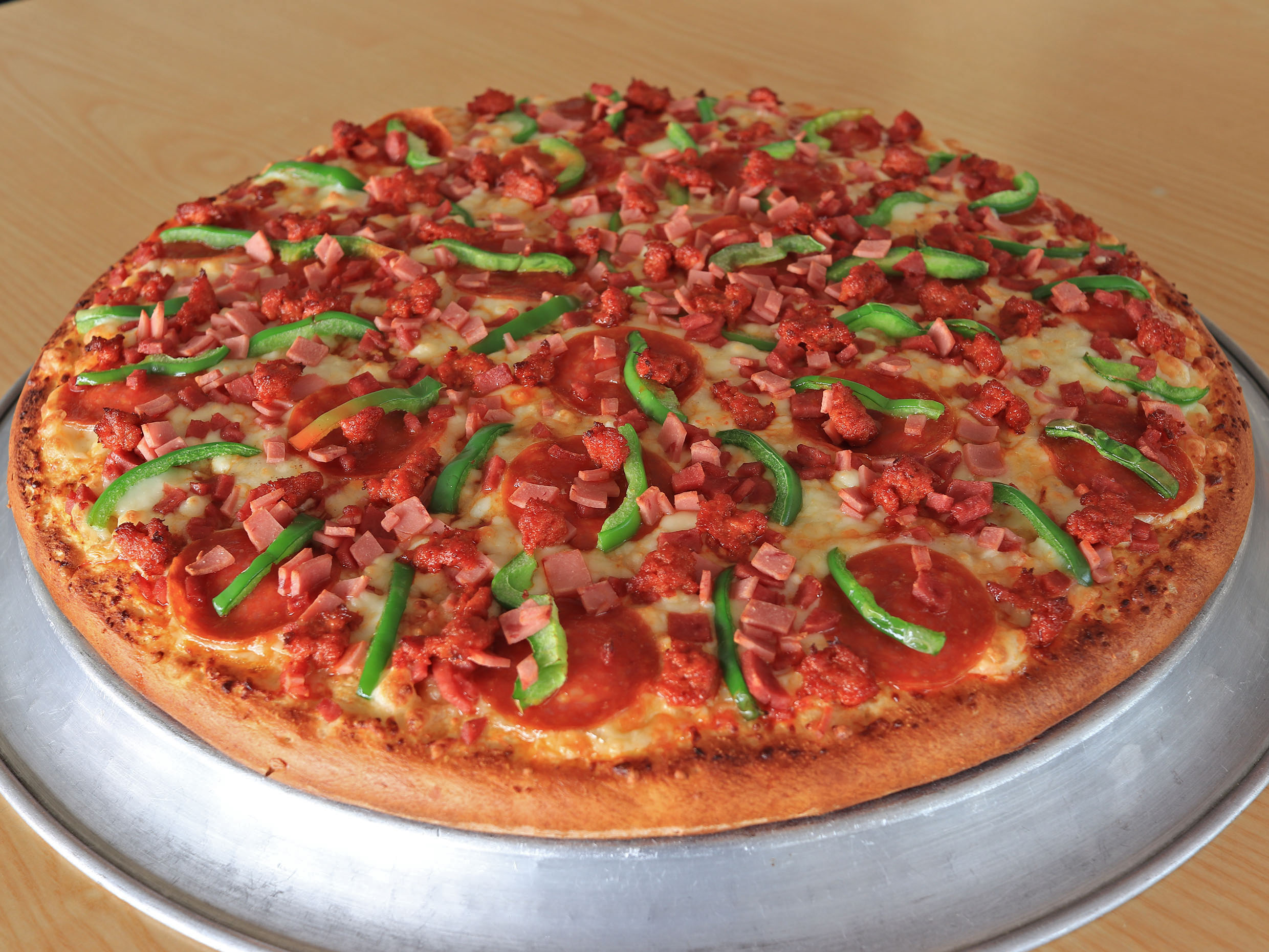 Jamón, pepperoni, salami, chorizo, pimiento morrón.