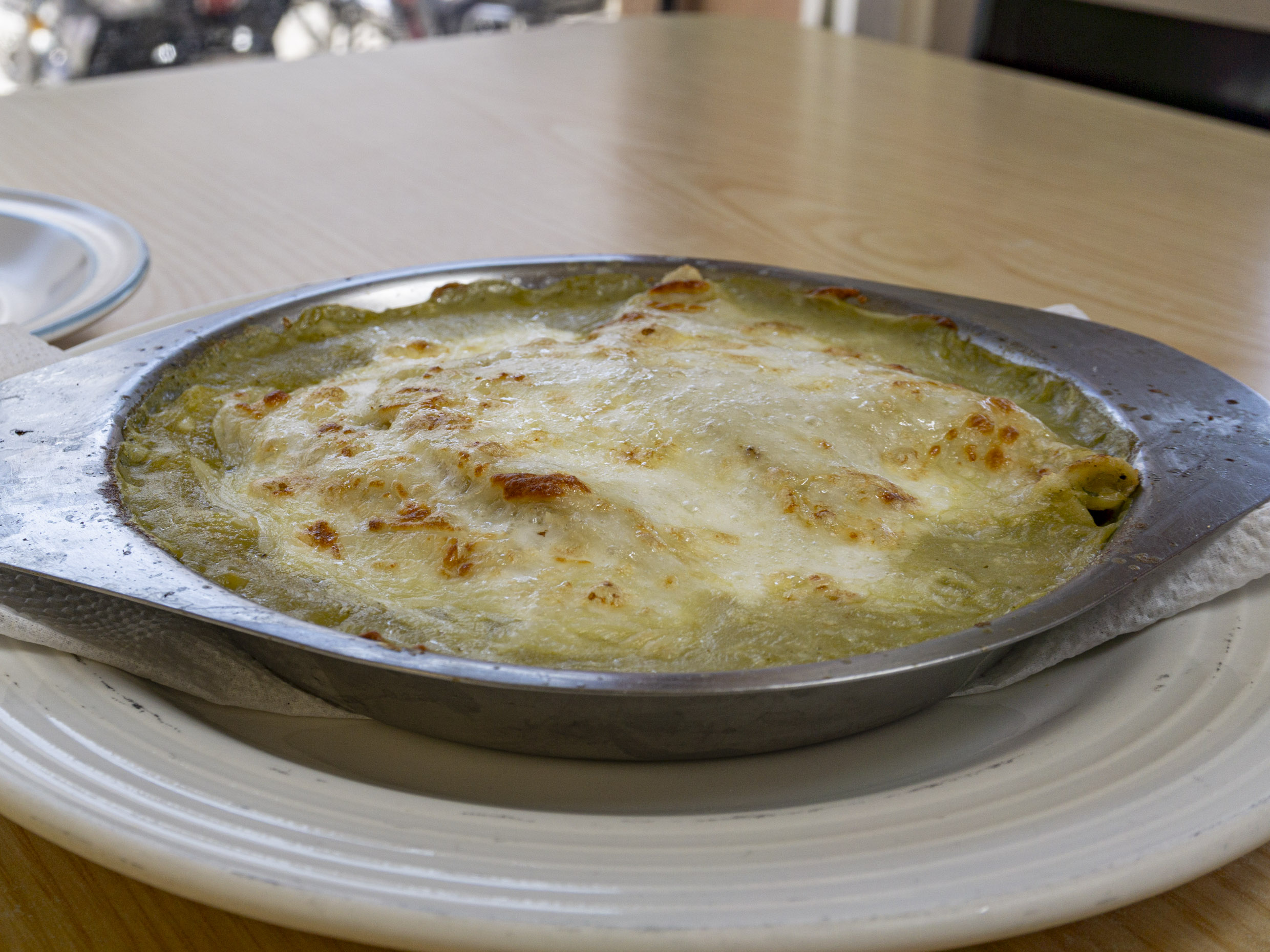 Mantequilla, tasajo, queso gratinado, cama de lechuga, tomate y aguacate. Incluye papas.