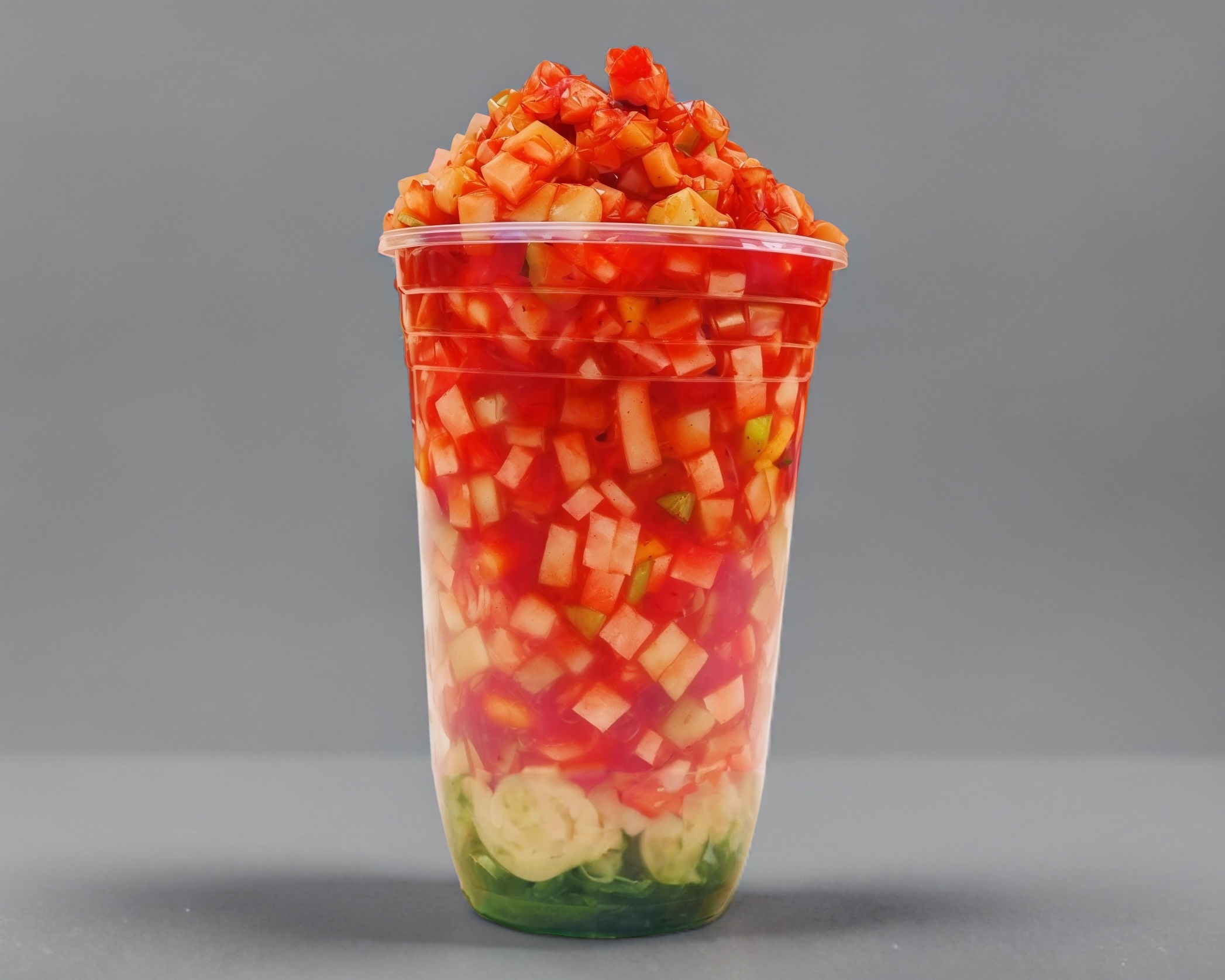 Vaso de 14 oz de frappé de Chamoy, con jicama, pepino, zanahoria y 4 toppings, chamoy, miguelito, tajín y limón