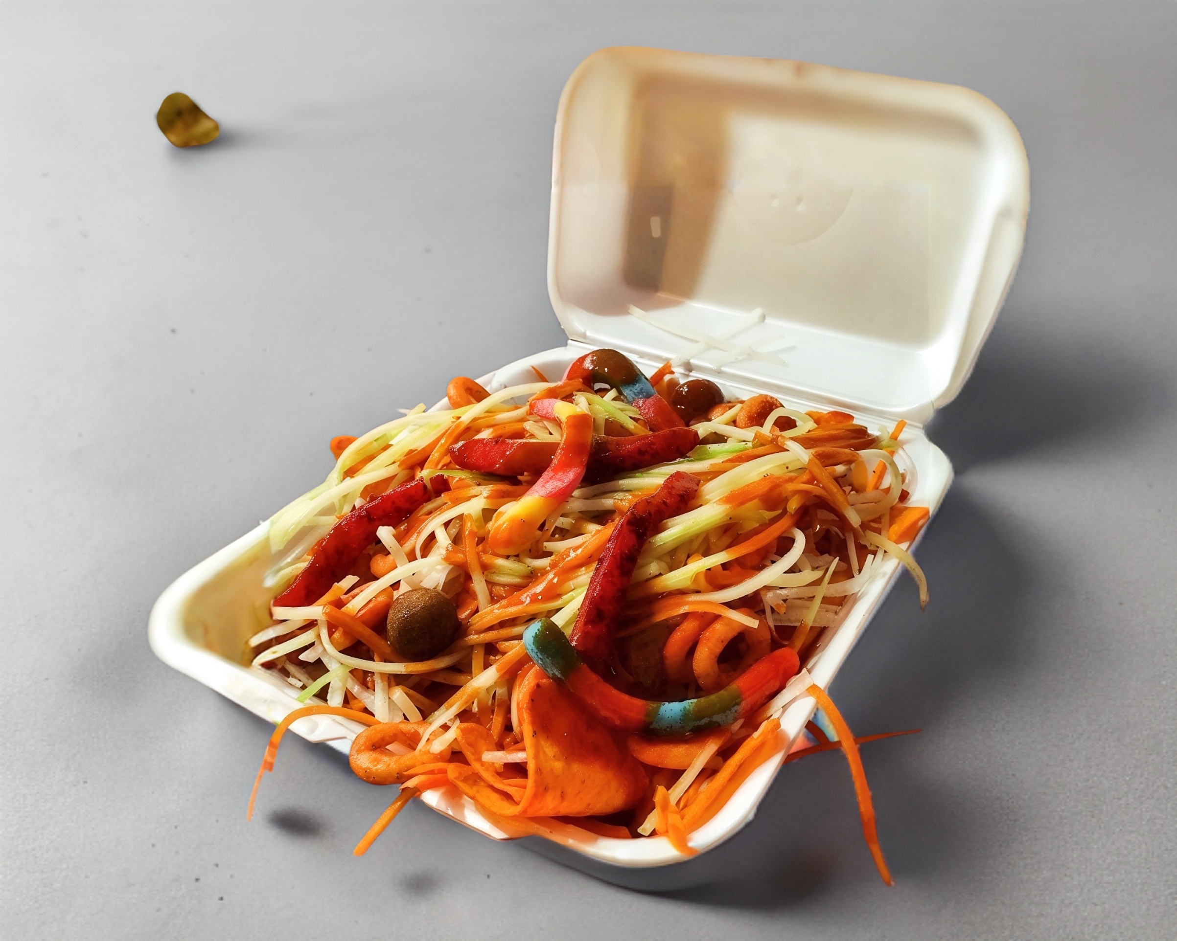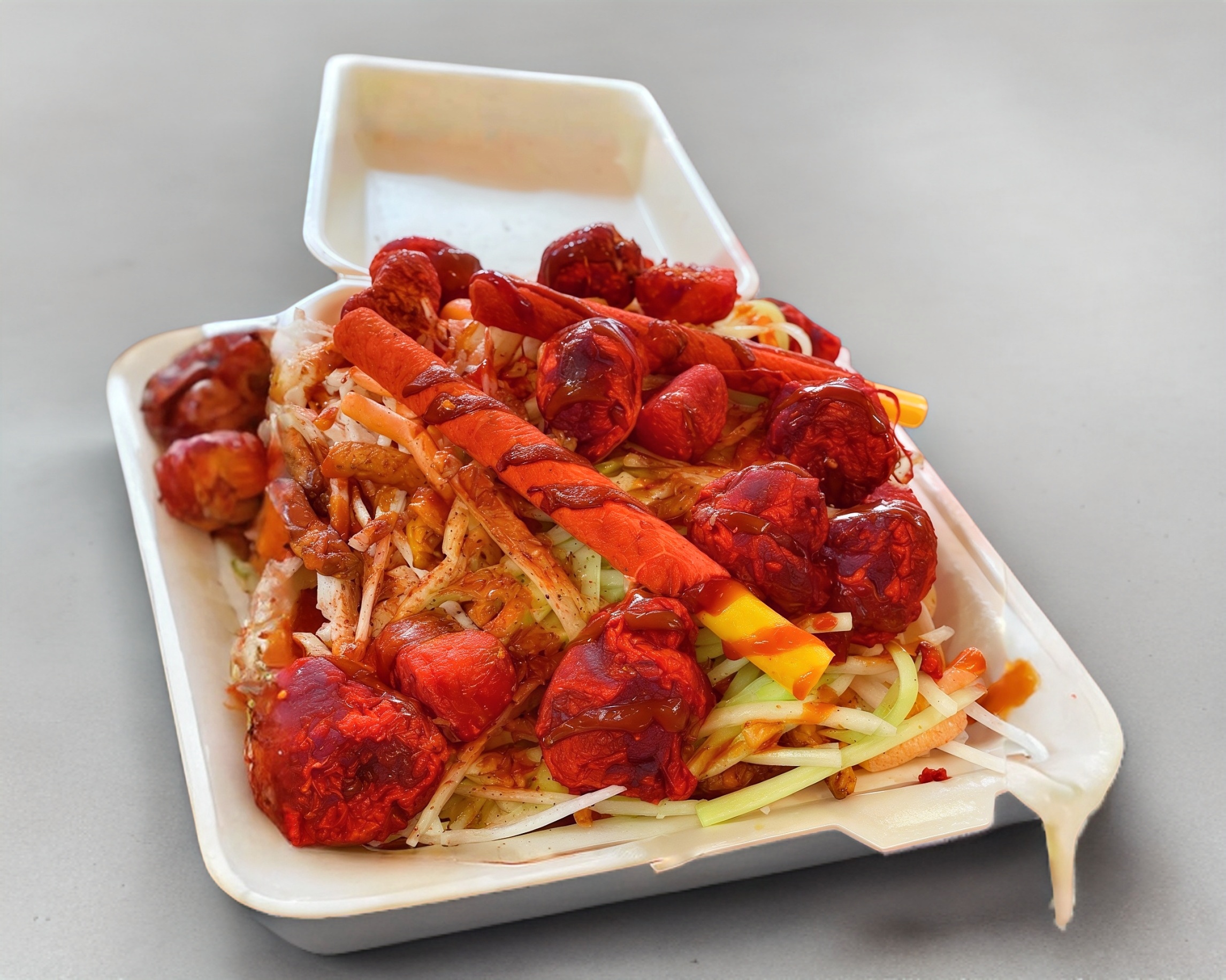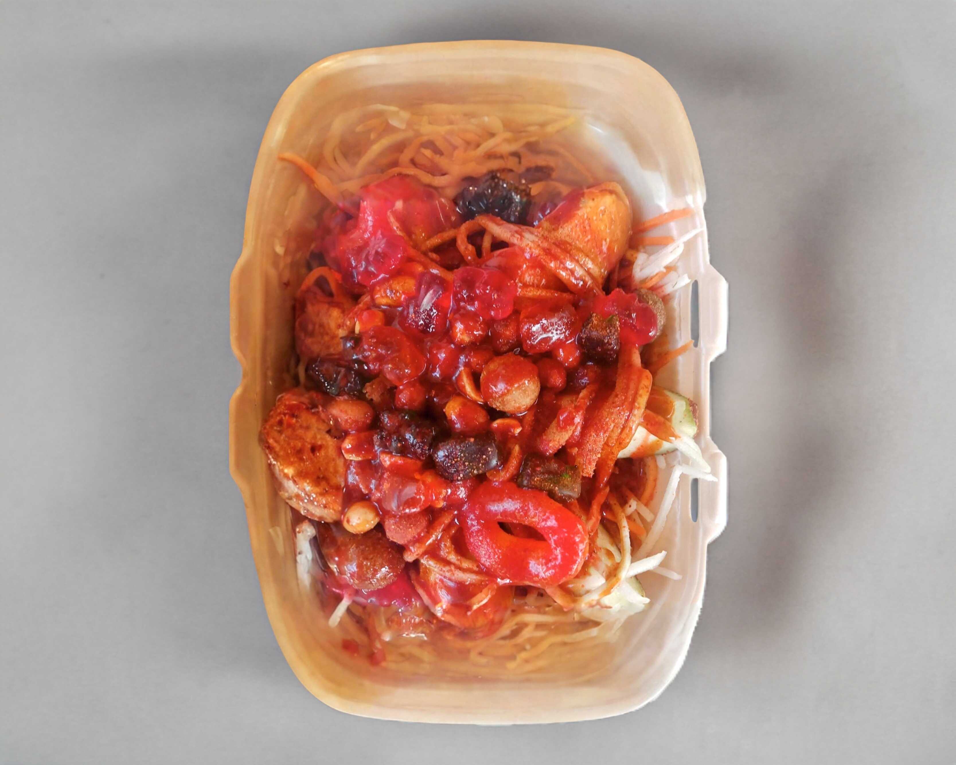 Zanahoria, Jícama, Pepino en forma de spaguetti, con 4 toppings, salsa, chamoy, miguelito, tajín y mucho limón