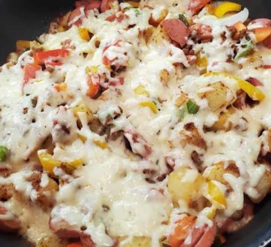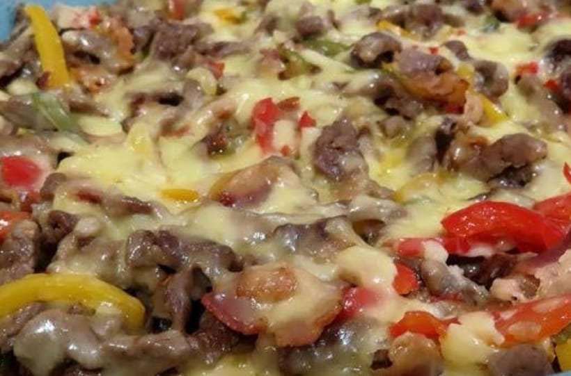 Suadero, morron, cebolla y quesillo.