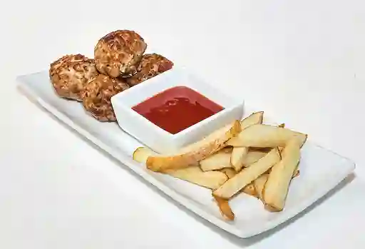Nuggets de pollo con papas fritas.