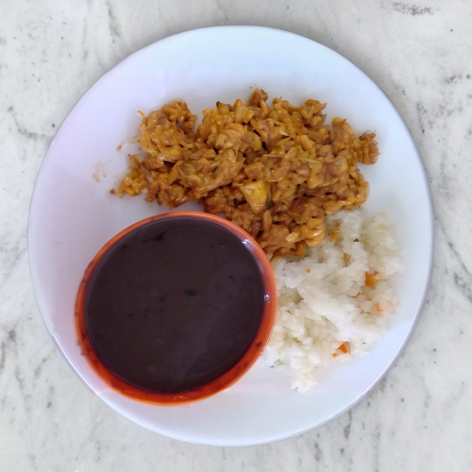 Con arroz frijol salsa tortillas de mano y agua de sabor