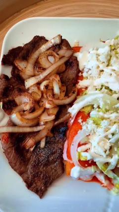 Agua del Día*1 + Cecina Encebollada con Nopales*1 + Licuado de Fresa Vaso 500 ml*1