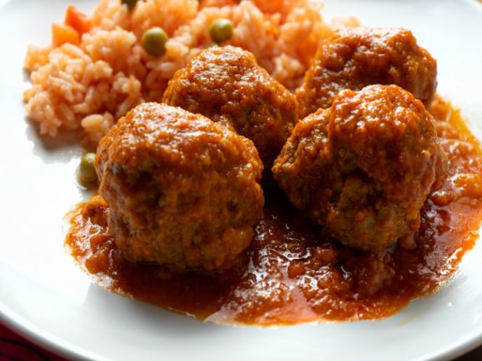 albondigas de carne molida mixta en salsa roja con chipole