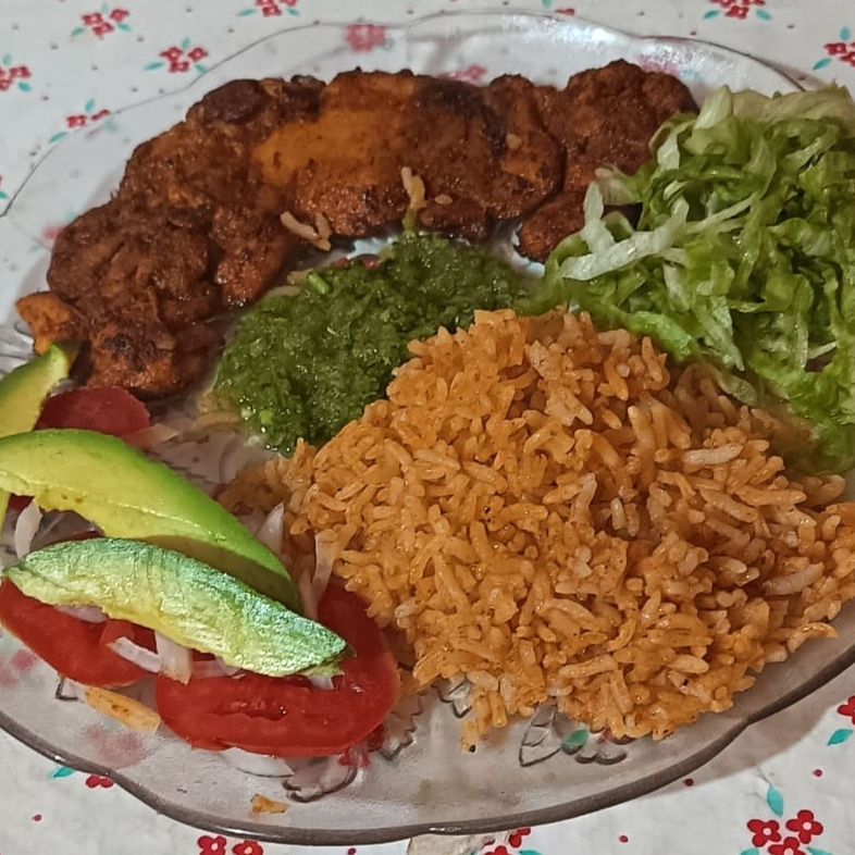 incluye agua fresca del dia y una porcion de tortillas elije 2 guarniciones arroz, frijol refrito o spagueti
