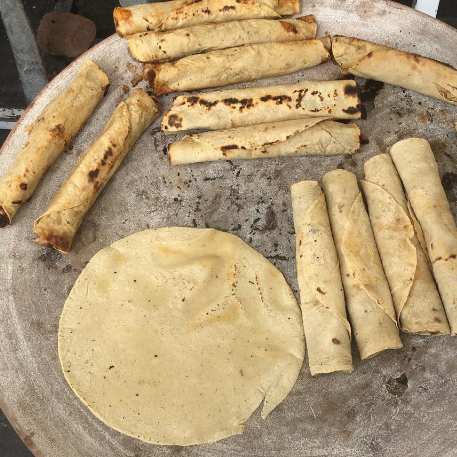 incluye agua fresca del dia una porcion de torrtillas y salsa de tomate picante