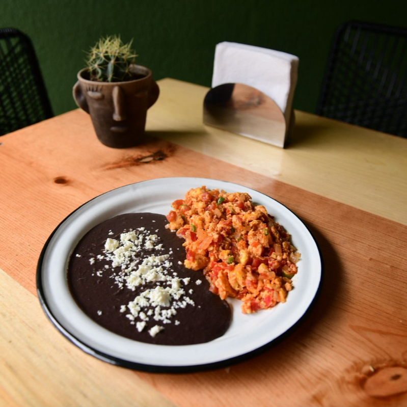 Acompañado de frijoles y tortillas.