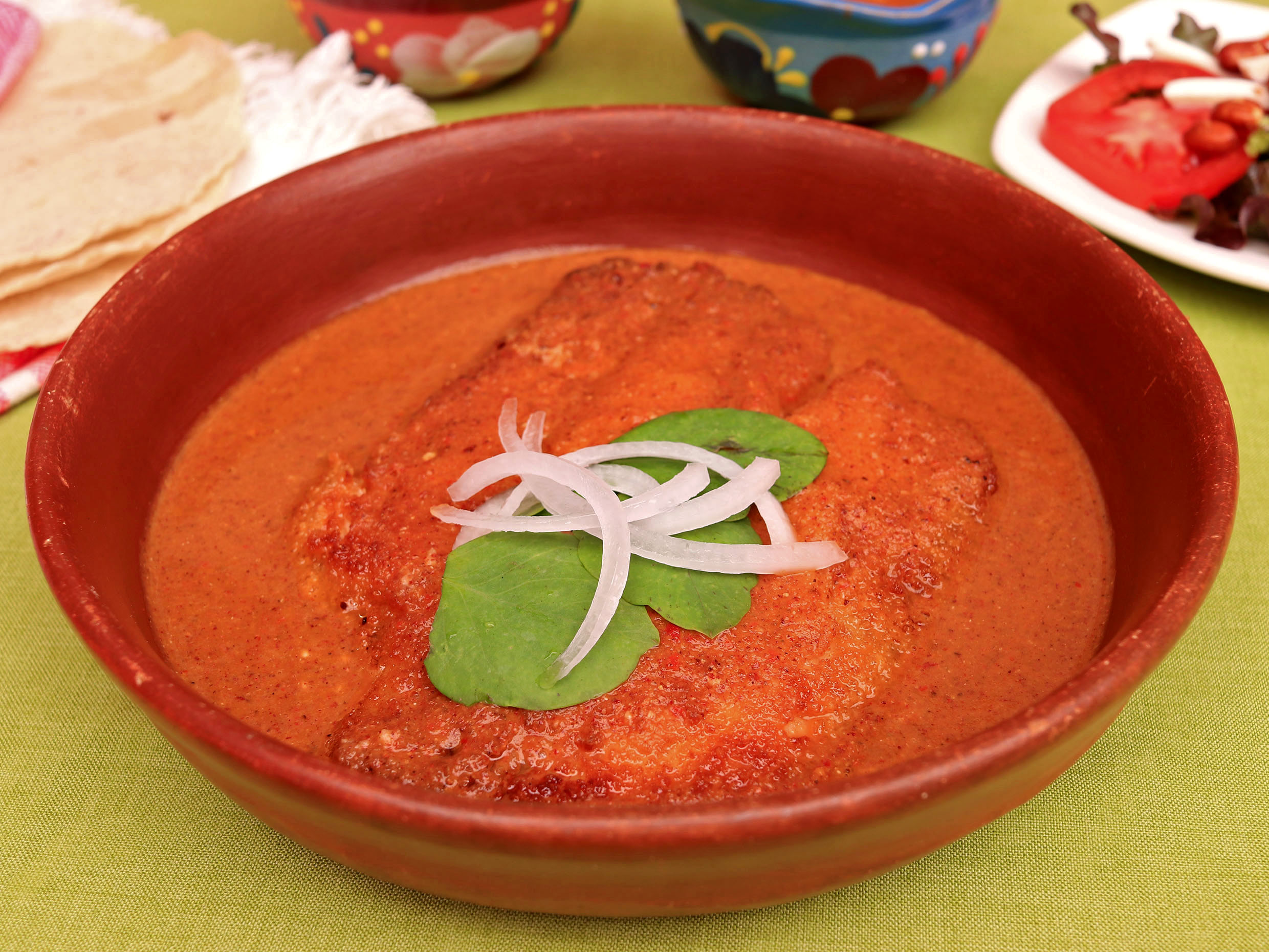 Frita en salsa de chile morita.