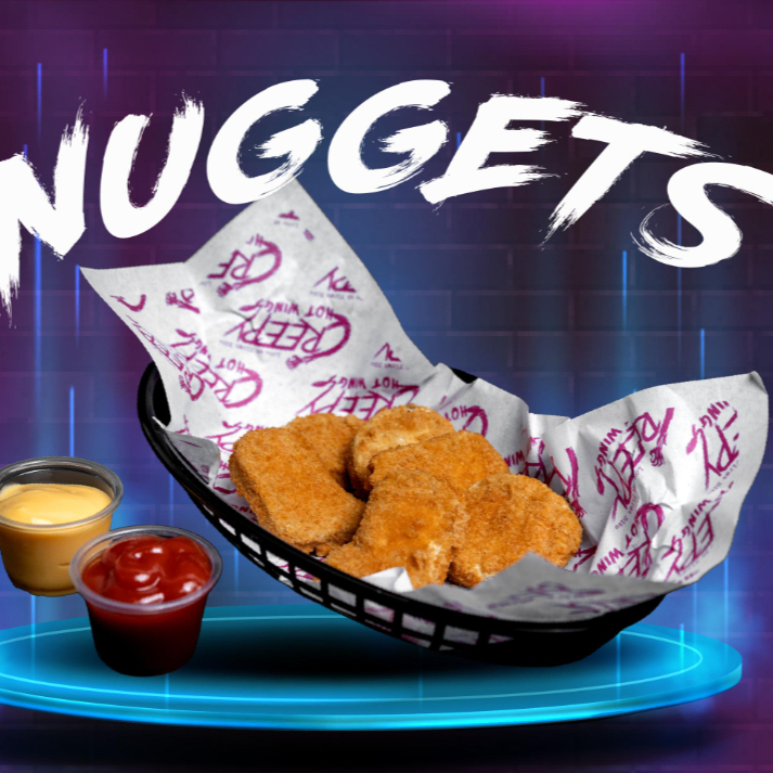 6 piezas de deliciosos nuggets de pollo.