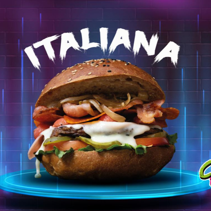 Pan artesanal, carne 100% de res, jamón, queso mozzarella, salchicha, pepperoni y tocino, acompañada de papas a la francesa.