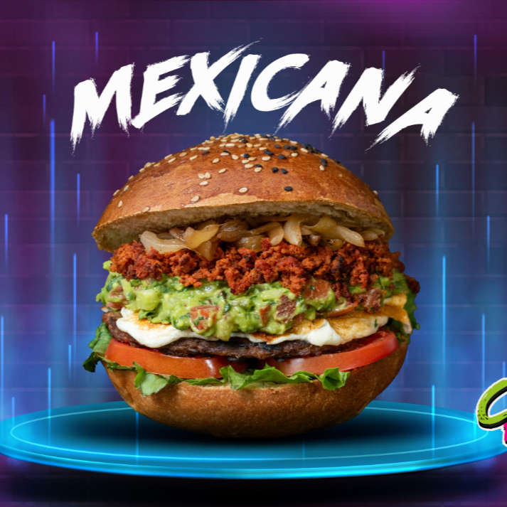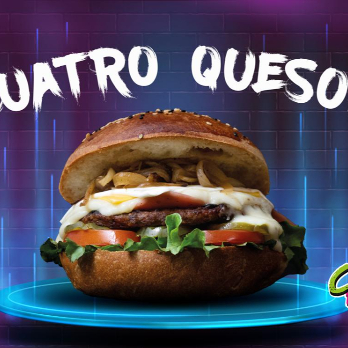 Pan artesanal, carne 100% de res, queso mozzarella, queso manchego, queso americano, queso crema, acompañada de papas a la francesa.