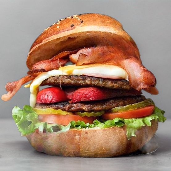 Pan artesanal, carne 100% de res, doble queso americano, tocino y huevo estrellado. Acompañadas con papas a la francesas.