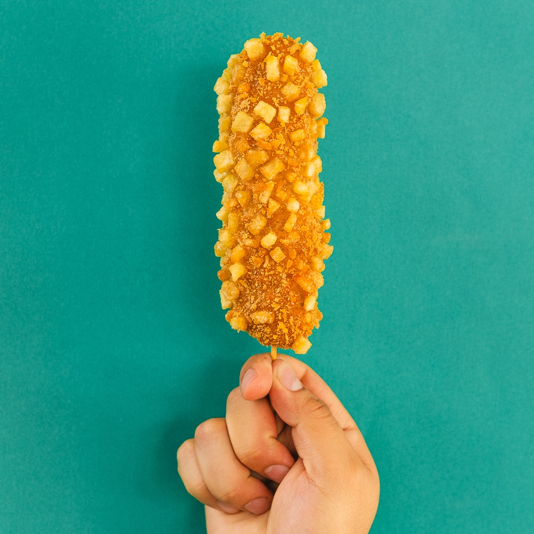 Preparada con masa, panko crujiente y cubierta de cubitos de papa, frita al momento